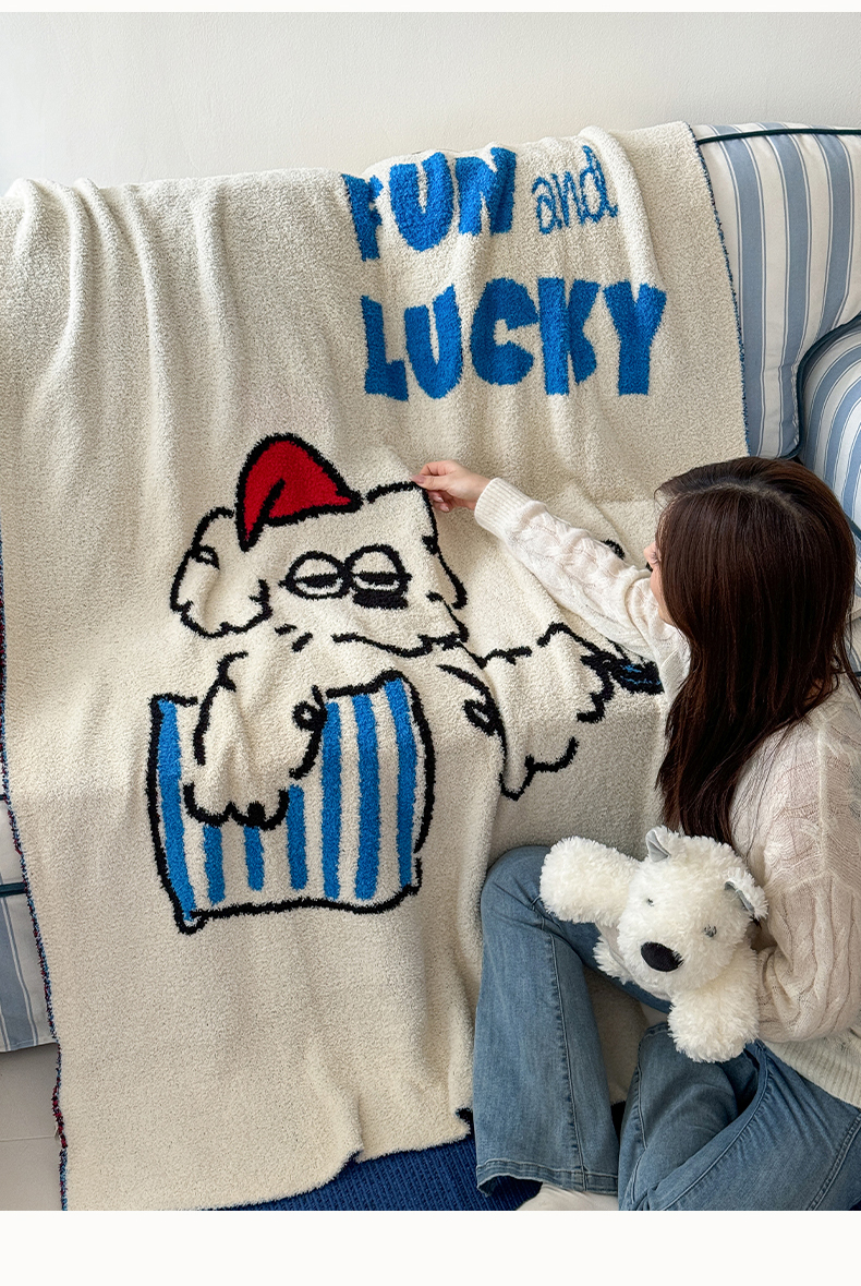 丹本家纺 2025新款设计师原创多功能针织半边绒毛毯午休毯盖毯加厚毯子 幸运送餐狗