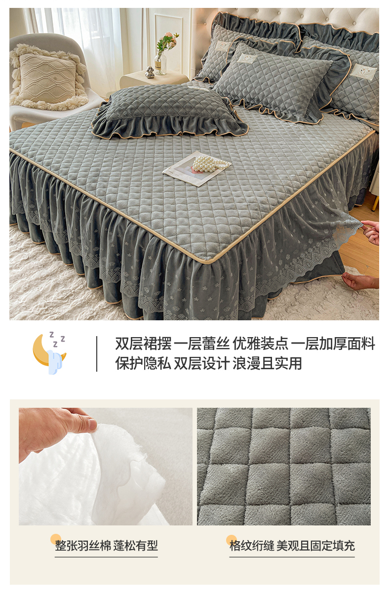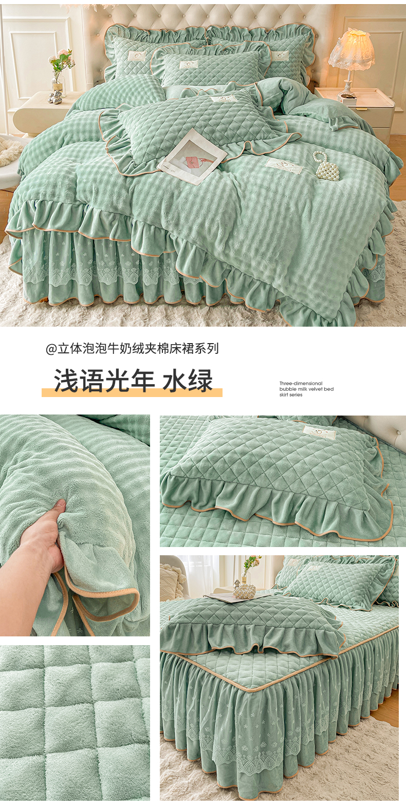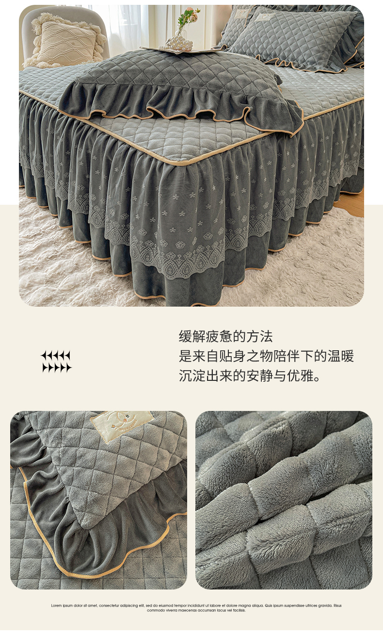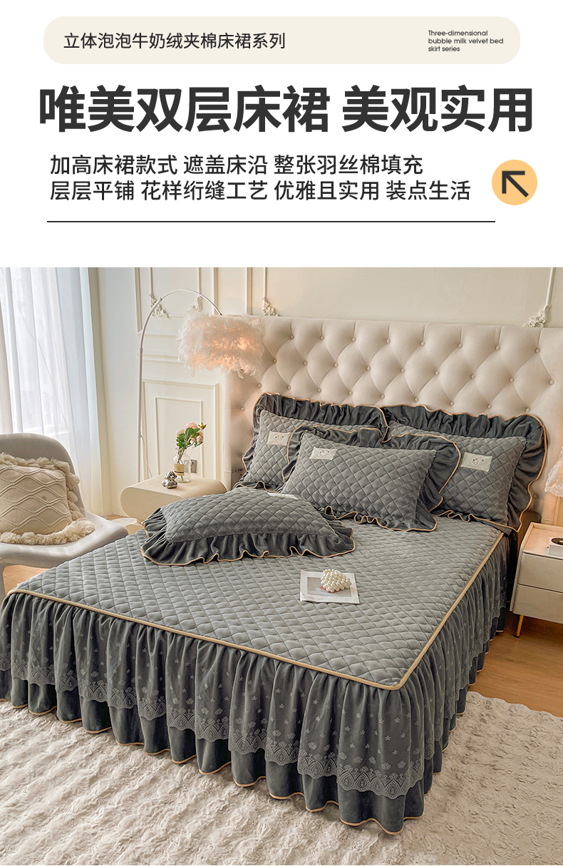当前位置: 91家纺网 > 商品网购 > 床品套件 > 四件套 > 牛奶绒四件套 > 情恒家纺 2025新款立体泡泡牛奶绒夹棉床裙四件套系列-浅语光年 浅语光年-星灰
