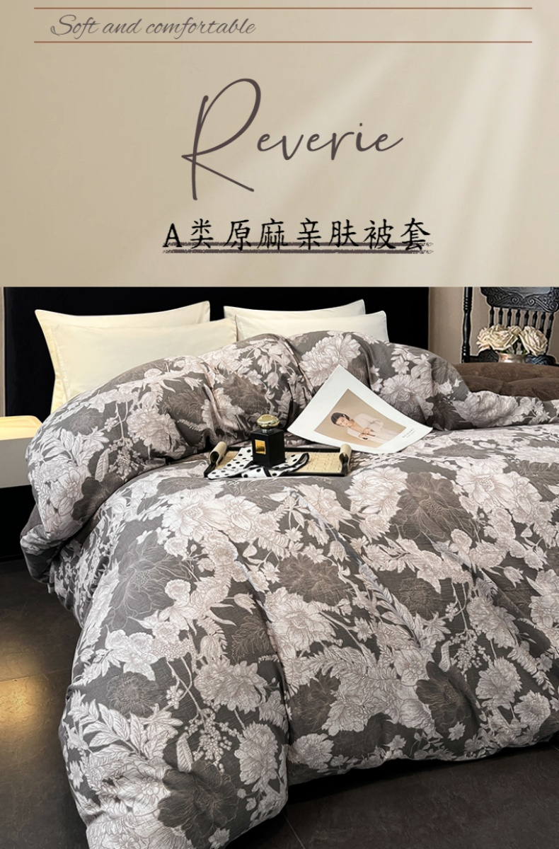 • 91家纺网 家纺一手货源 找家纺 圣比熊 2025新款原麻亲肤单品被套单件被套 浮绘花影-白