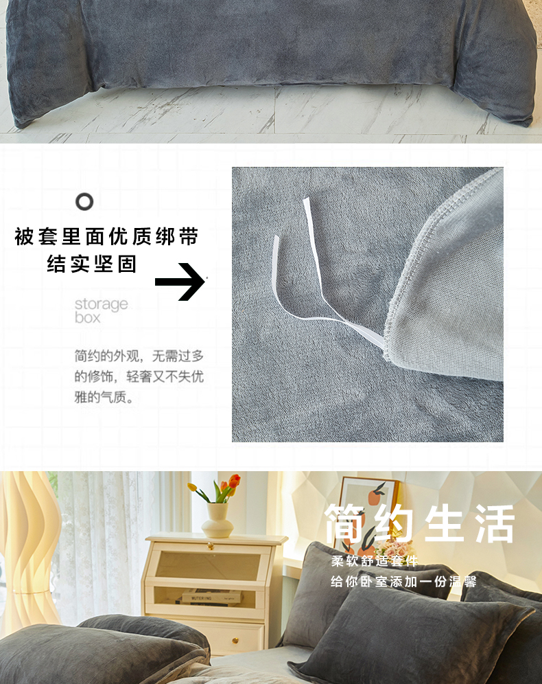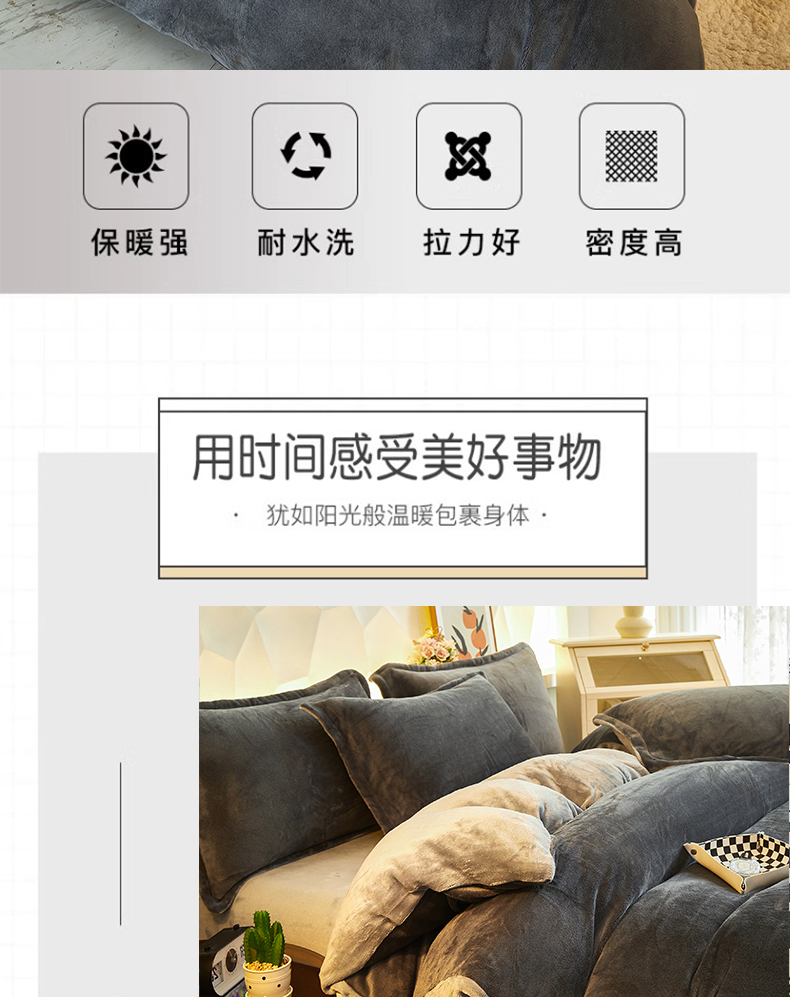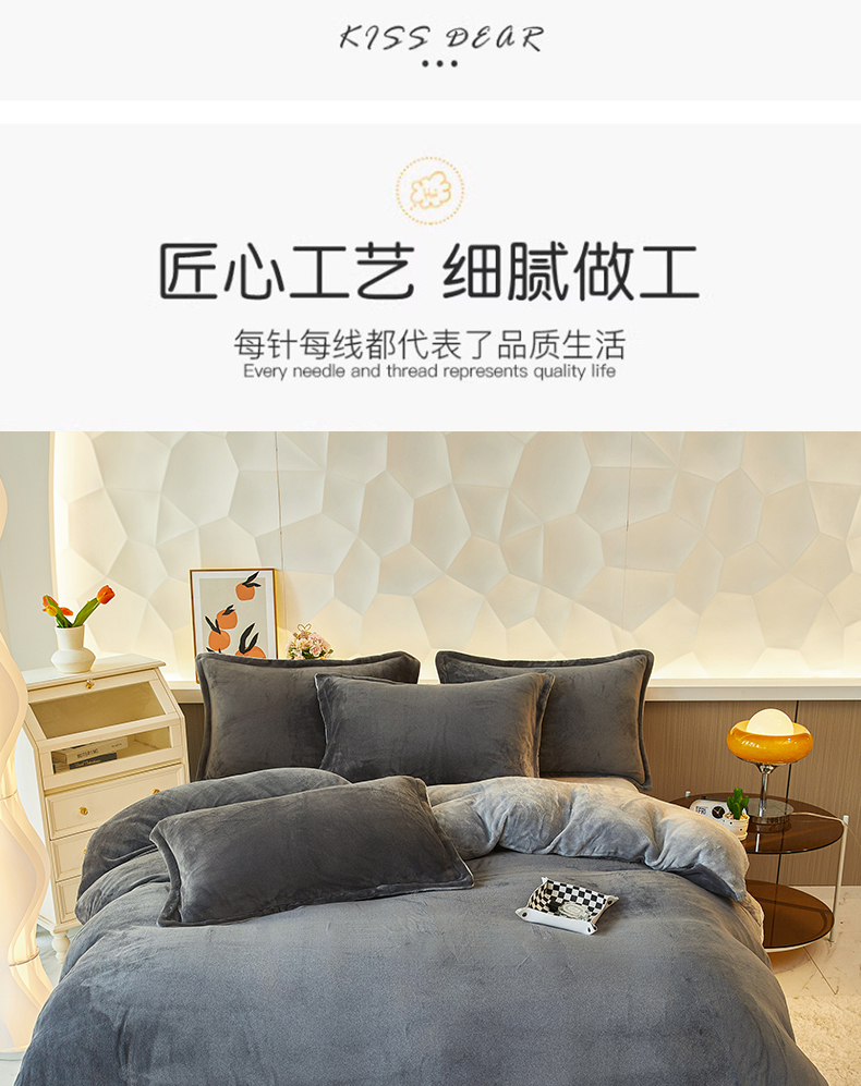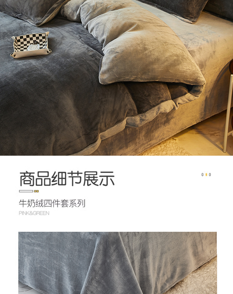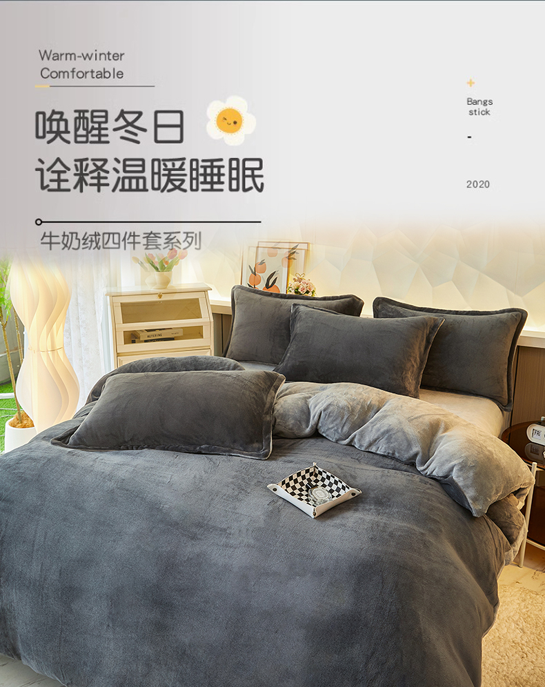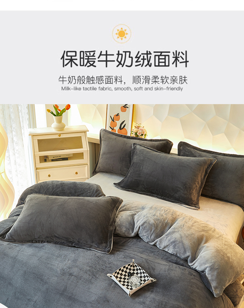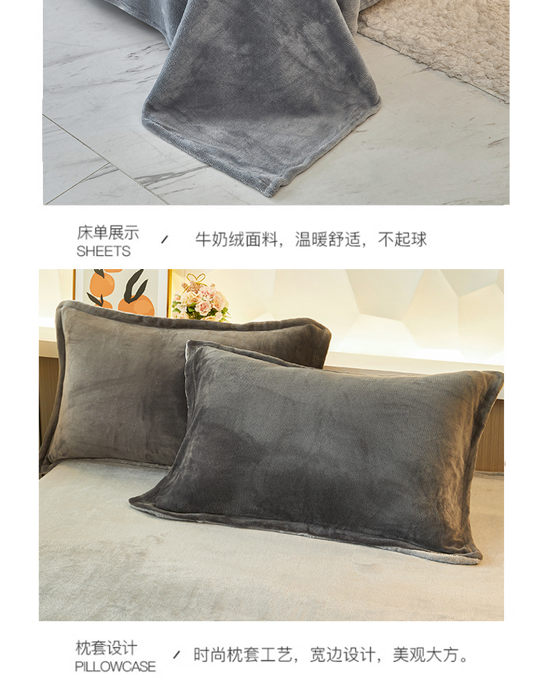 商品名称:三盛源 2025新款牛奶绒床品四件套冬季加厚珊瑚绒被套罩双面加绒法兰绒床单三件套 深灰-灰
