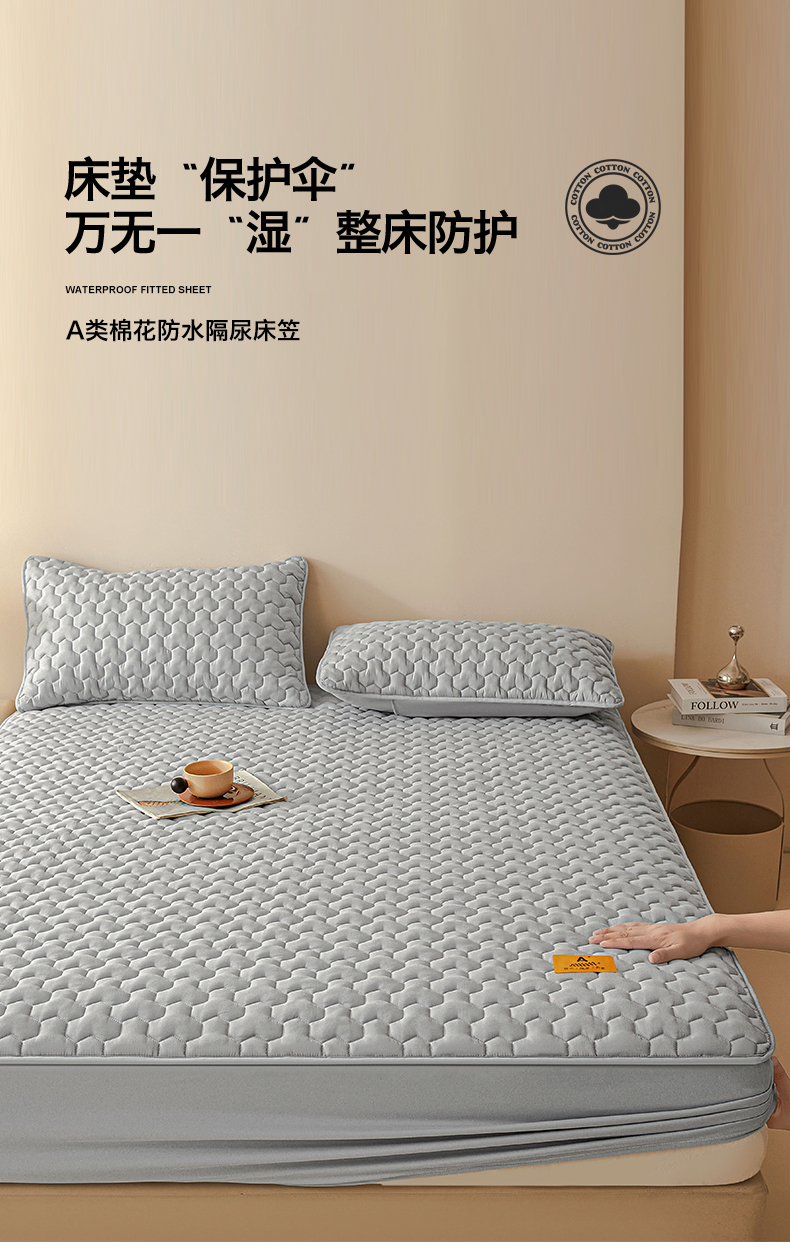 • 91家纺网 家纺一手货源 找家纺 居眠 2025新款简格-棉花防水床笠-简格 简格-灰色
