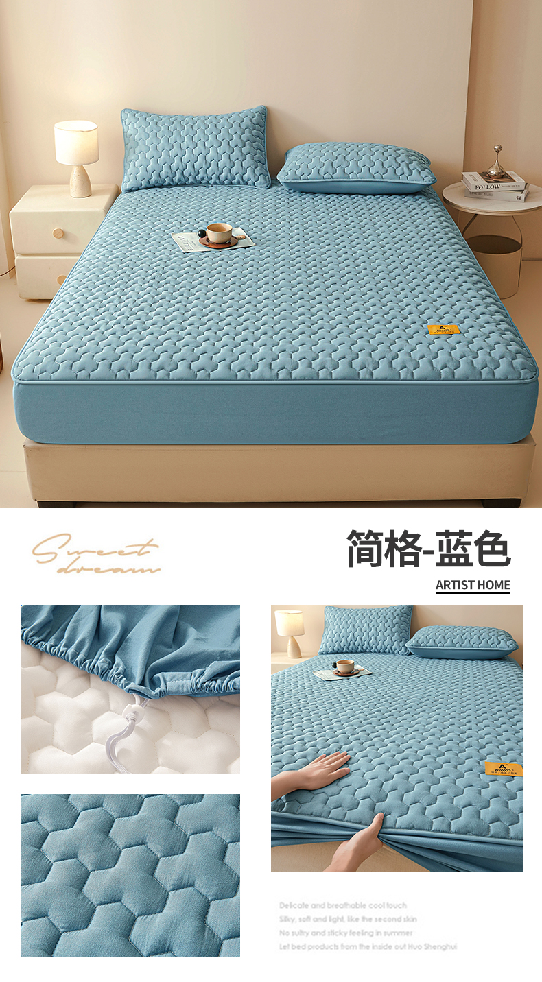 • 91家纺网 家纺一手货源 找家纺 (总)居眠 2026新款全棉色织水洗棉格子夹棉棉花床笠,夹棉款-摩登蓝卡条,夹棉款-摩登绿卡条