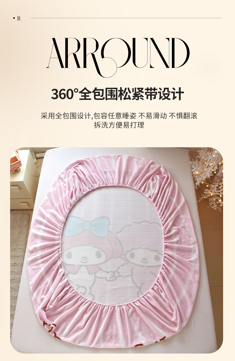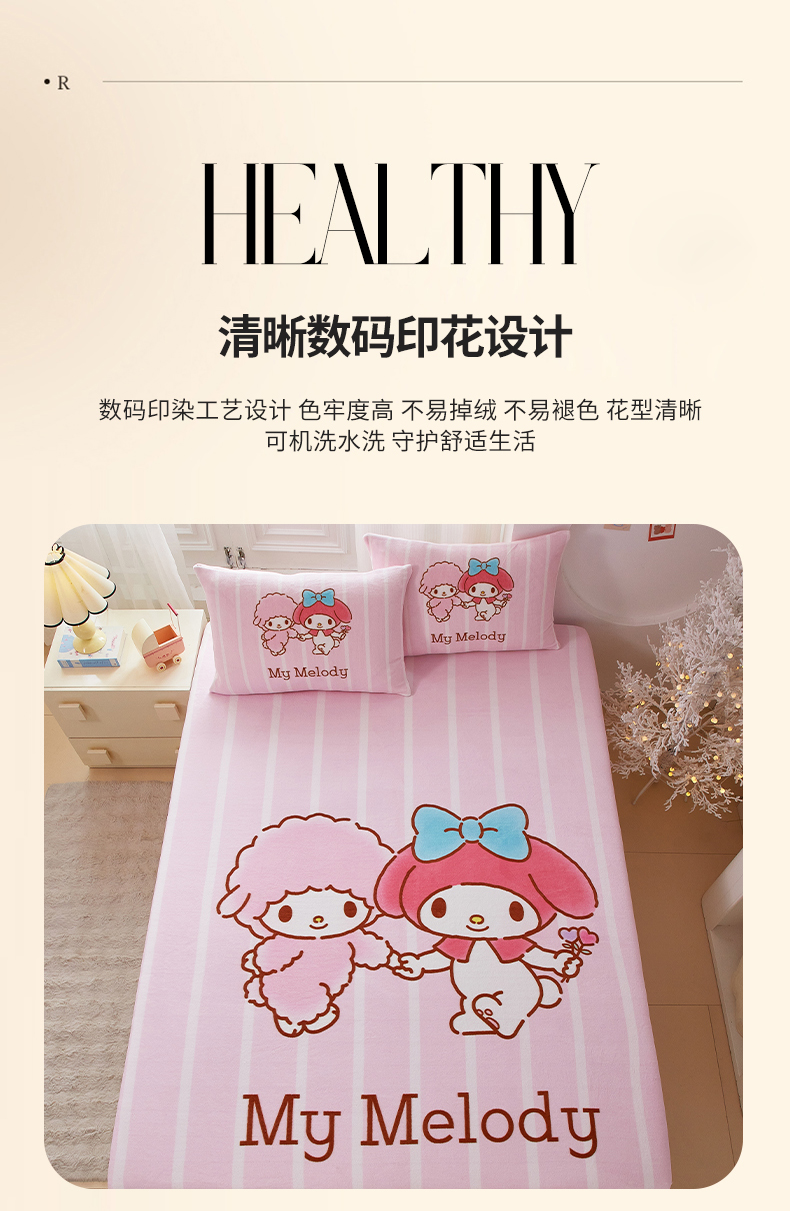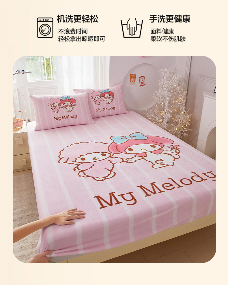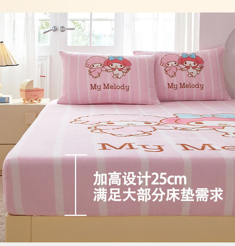 商品名称:蘭菲家纺 2025新款三丽欧牛奶绒套件系列单品床笠 美乐必爱