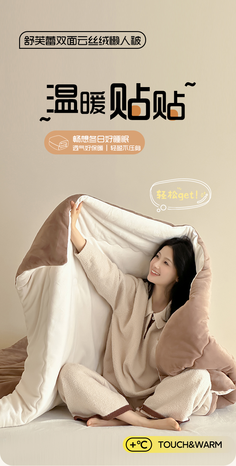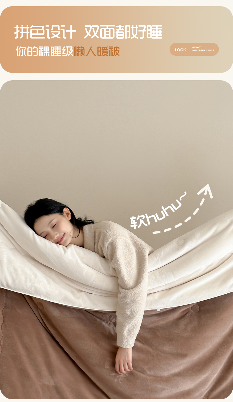三味舒屋 2025新款舒芙蕾双面云丝绒懒人被(所有券叠加后不低于198/248元) 被子被芯 米咖奶油