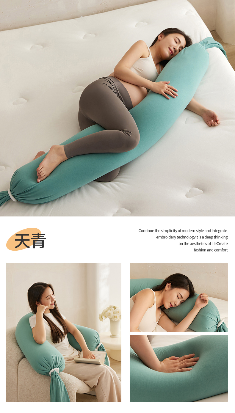 商品名称:头等舱 2025新款全棉氨纶针织A类孕妇 护腰 侧睡 靠垫 安抚枕 抱抱 夹腿多功能枕(模特图)配包装 天青