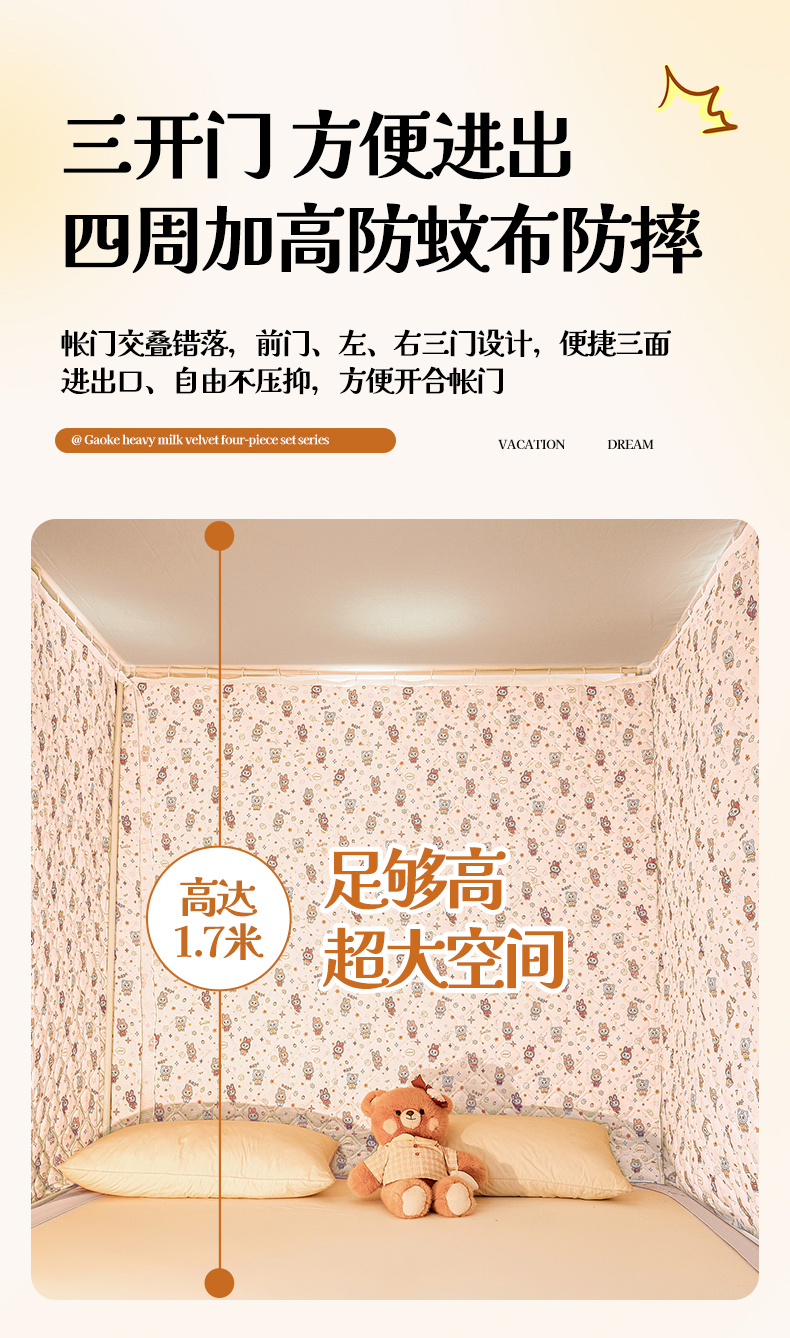 • 91家纺网 家纺一手货源 找家纺 (总)夏彩 2025新款五面保暖亲肤面料坐床拉链四季款蚊帐-88632,星愿熊,拉贝贝,羽飞舞,支架,保暖顶-灰色,保暖顶-粉色,保暖顶-绿色