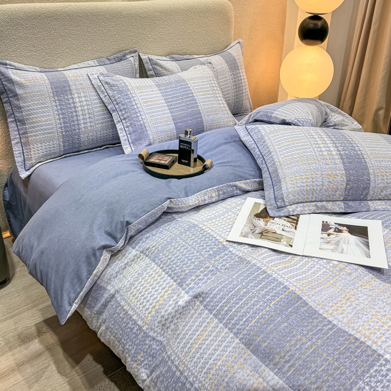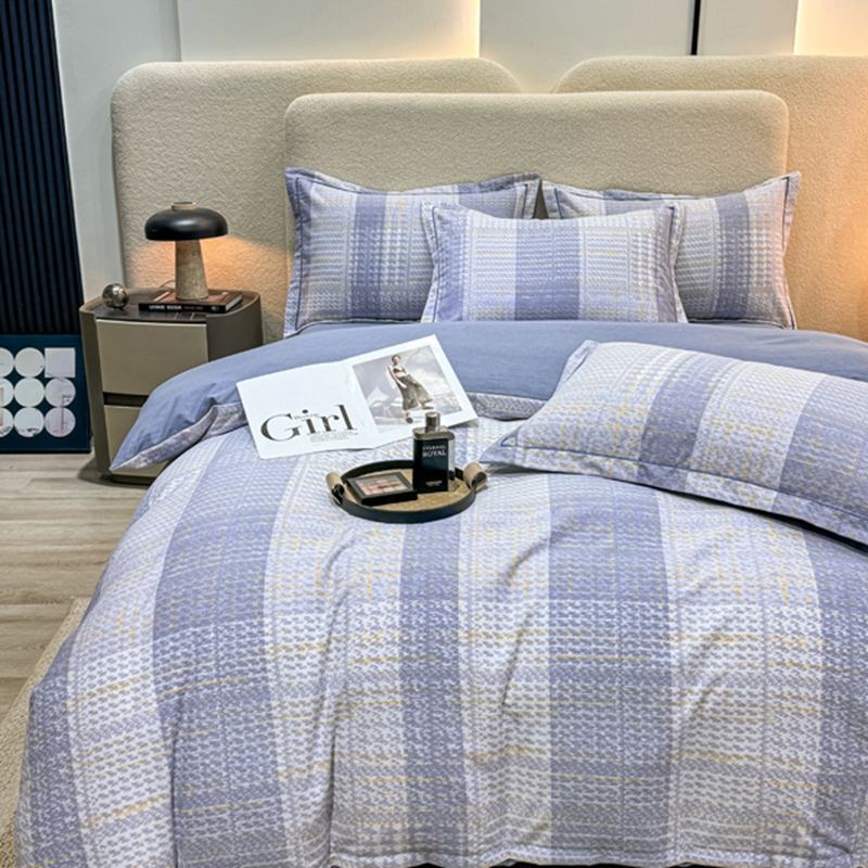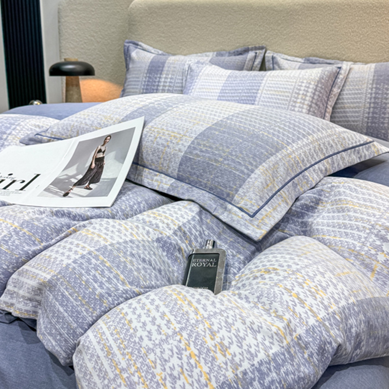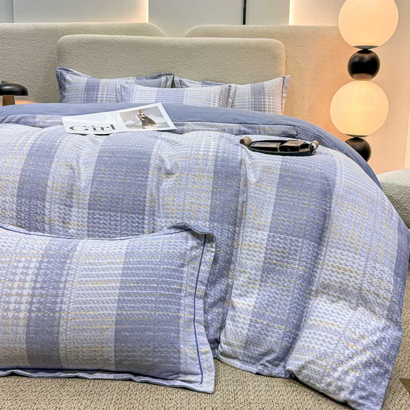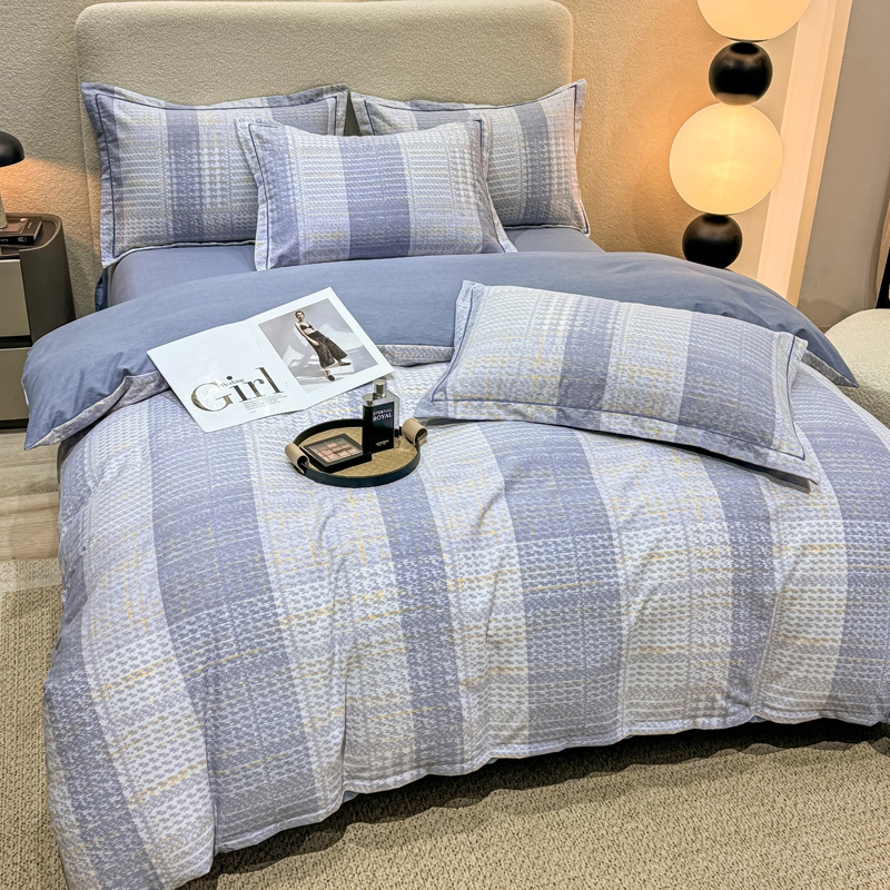 木易家居 2025新款全棉色织水洗棉四件套海伦-蓝,海伦-蓝