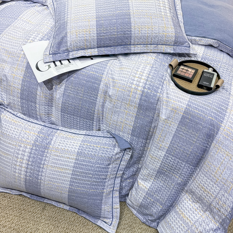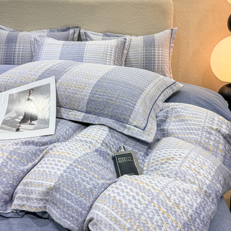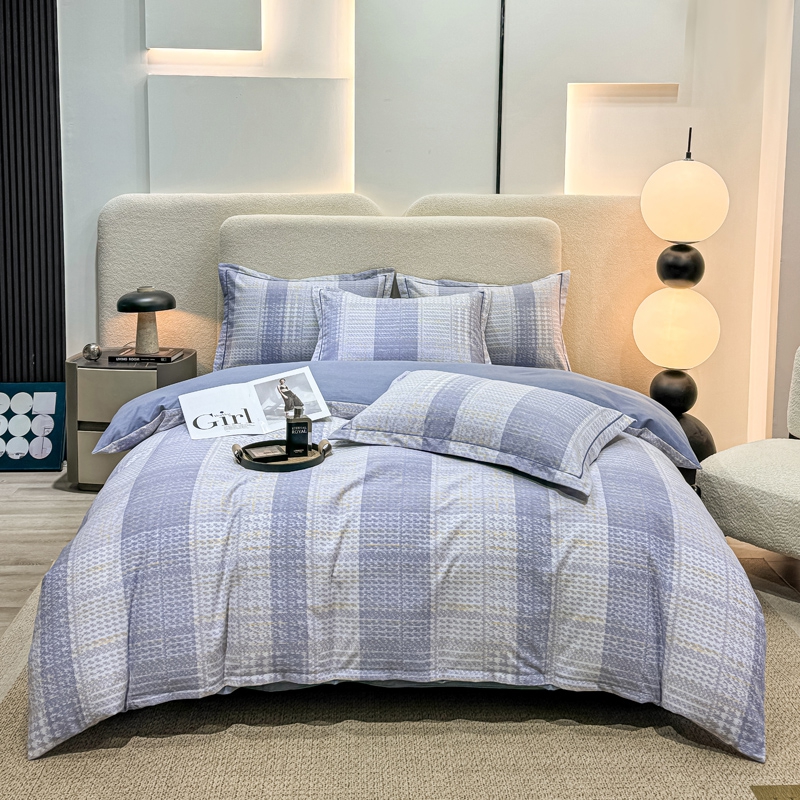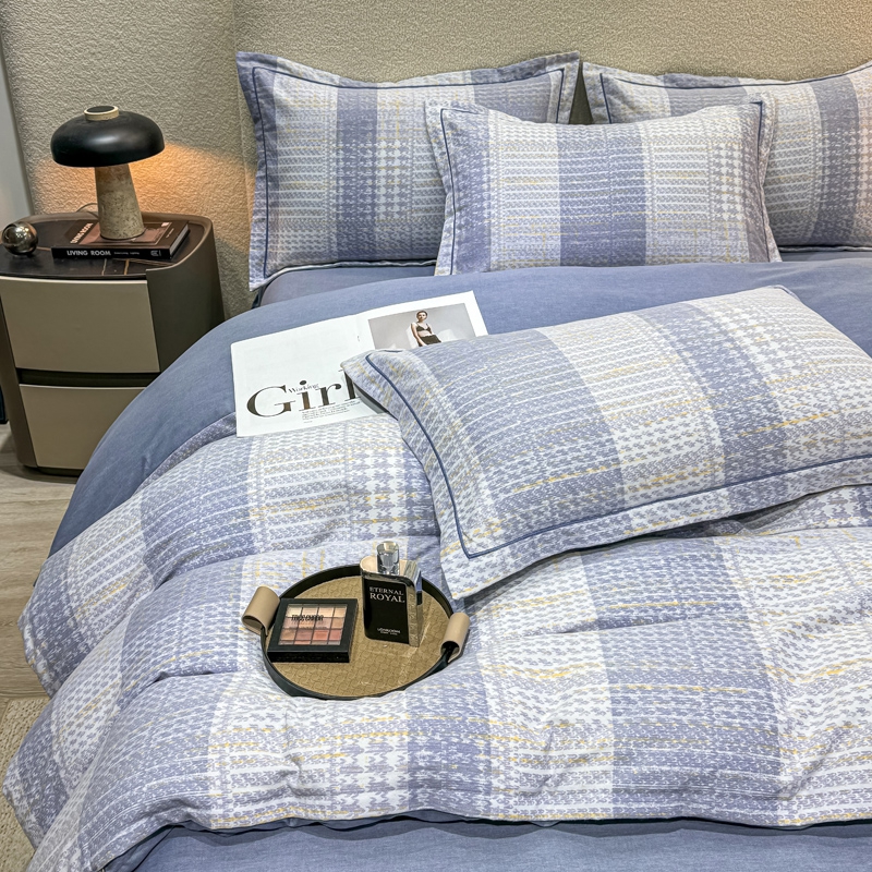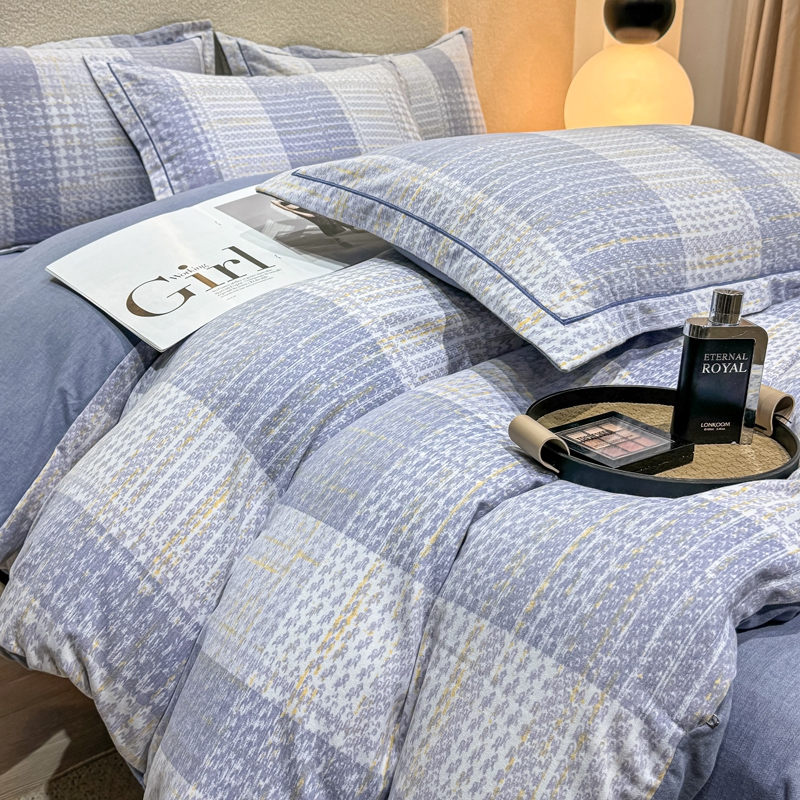 木易家居 2025新款全棉色织水洗棉四件套海伦-蓝,海伦-蓝