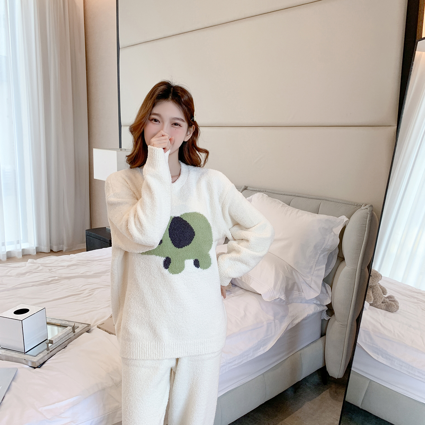 (总)多乐娜 2025新款出口日单高定款半边绒家居服重量高达1600g高级出口品质非市面普货(控价!请不要低于165元销售!!!!!),暖棕色,青奈色