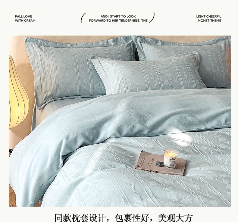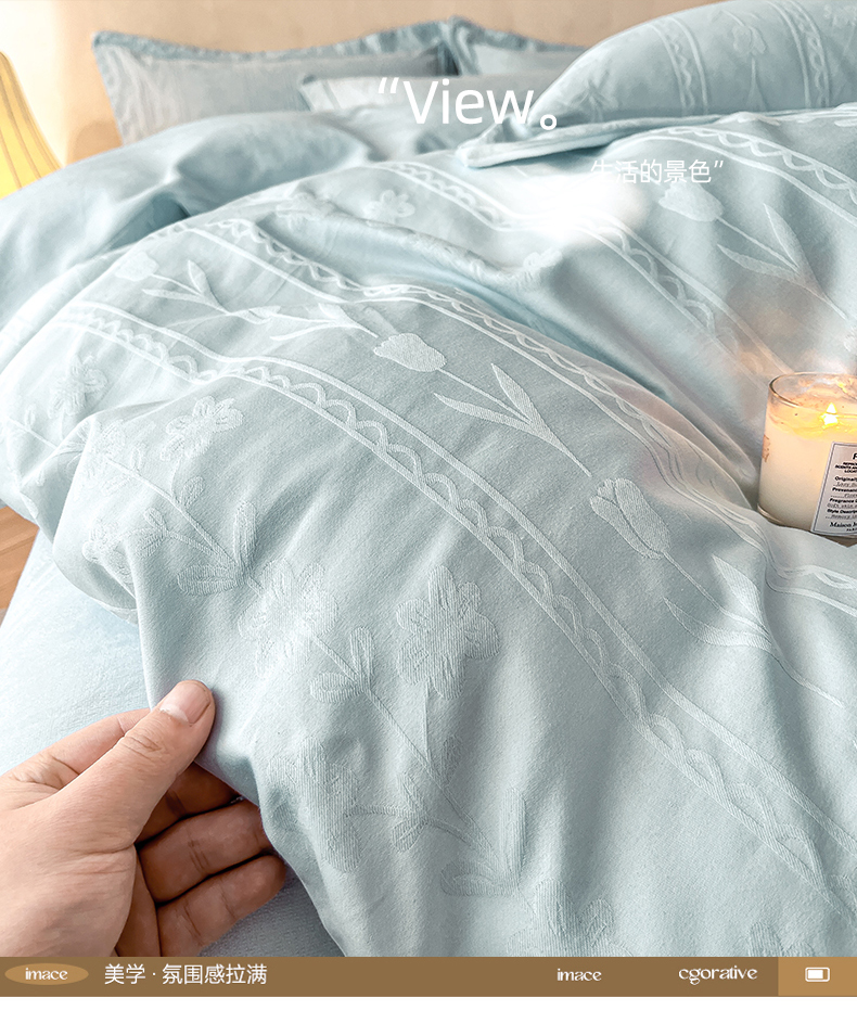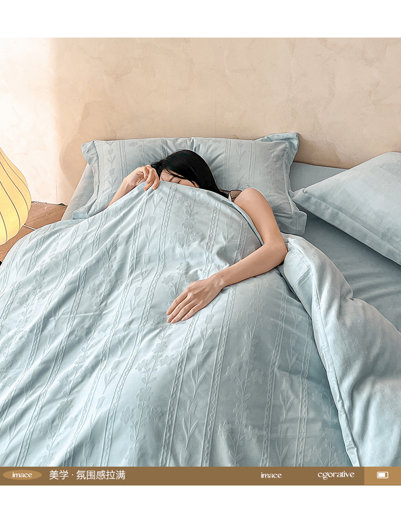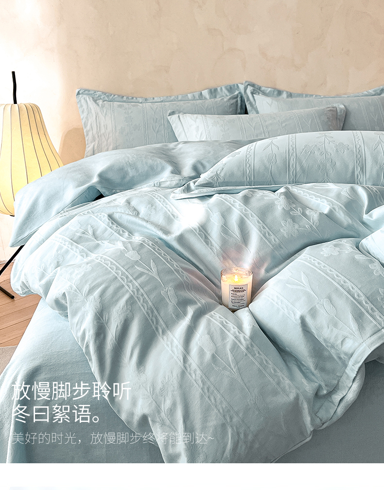当前位置: 91家纺网 > 商品网购 > 床品套件 > 四件套 > 其它四件套 > 禾时 2025新款全棉加厚立体提花加绒四件套 花屿-淡雅蓝(加绒款)