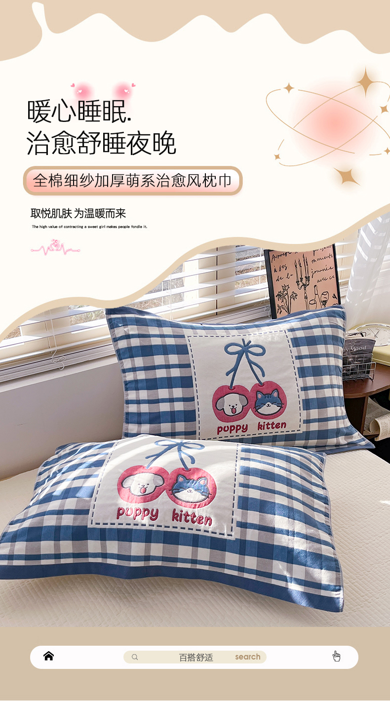 (总)美宜家 2026新款全棉细纱加厚萌系治愈风枕巾