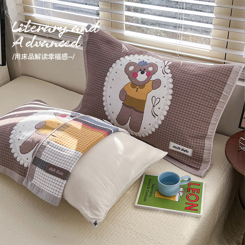 美宜家 2026新款全棉细纱加厚萌系治愈风枕巾 绅士熊一对