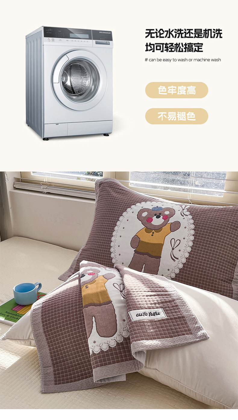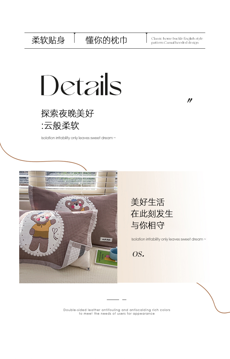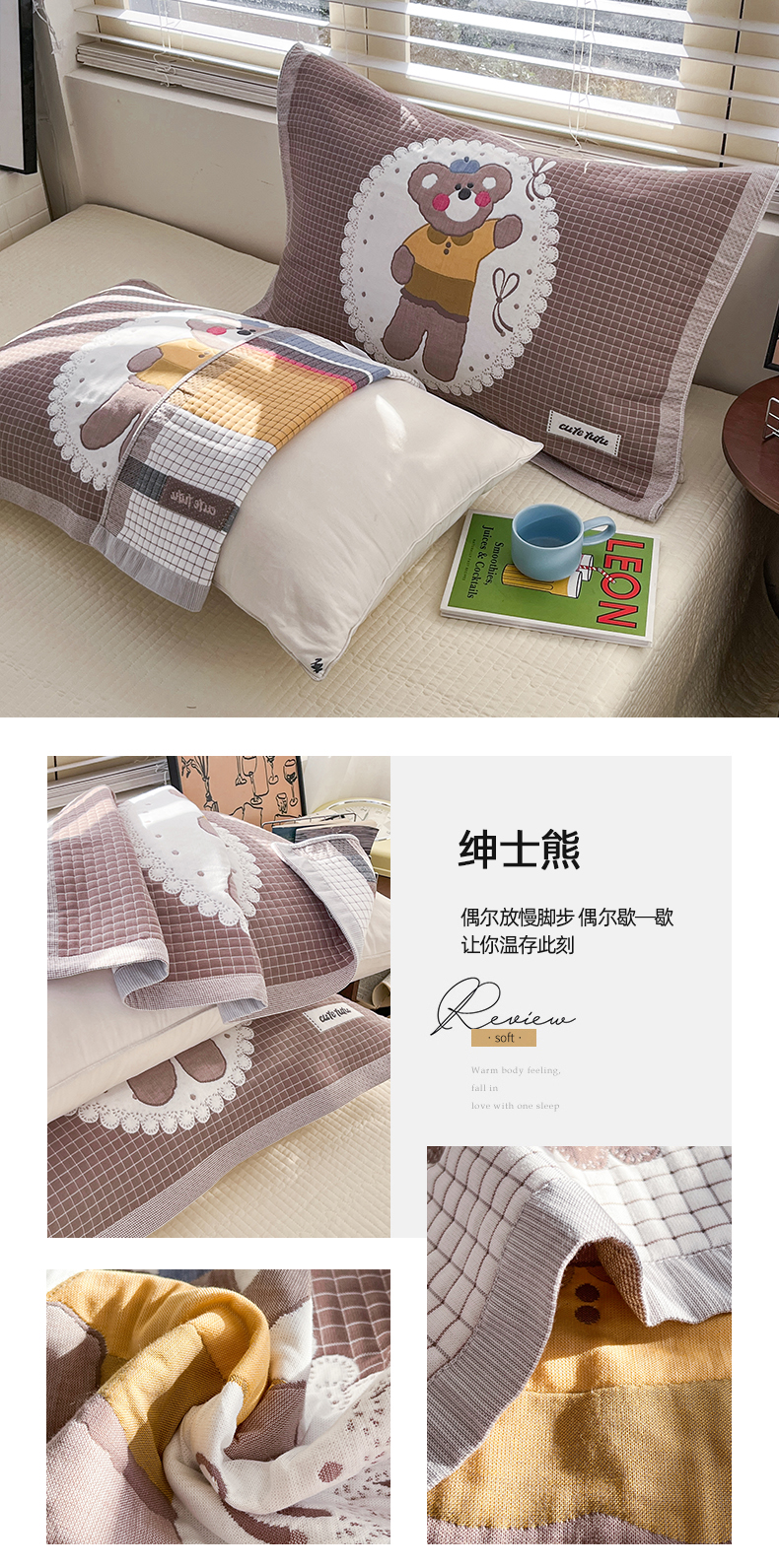 商品名称:美宜家 2026新款全棉细纱加厚萌系治愈风枕巾 绅士熊一对