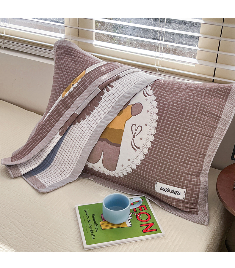 (总)美宜家 2026新款全棉细纱加厚萌系治愈风枕巾,条纹蘑菇一只,伙伴一只,萌萌兔一只,绅士熊一只,童趣一只,小暖狗一只,条纹蘑菇一对,伙伴一对,萌萌兔一对,绅士熊一对,童趣一对,小暖狗一对