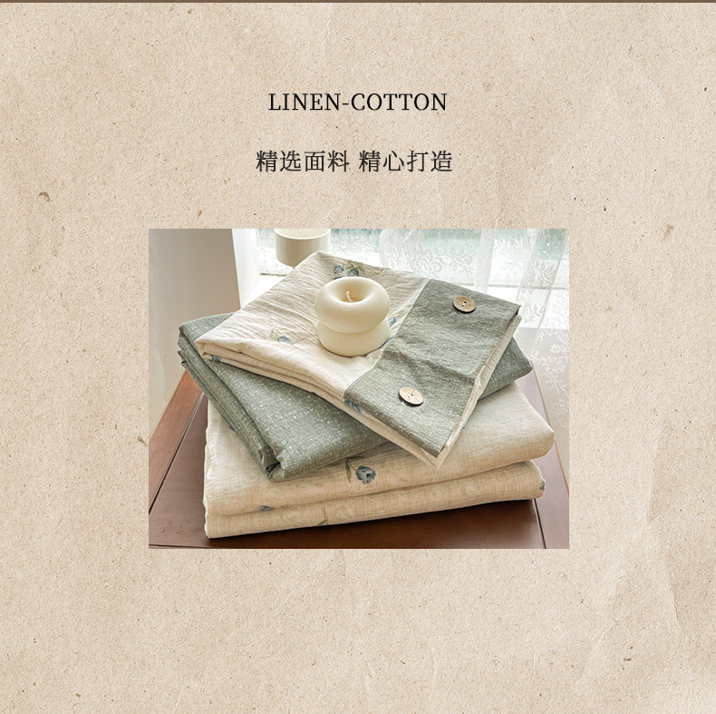 当前位置: 91家纺网 > 商品网购 > 床品套件 > 四件套 > 其它四件套 > 爱彼家纺 2025四季款亲水洗麻亚麻皱皱纱四件套-纽扣款-提供买家秀 暗香浮动