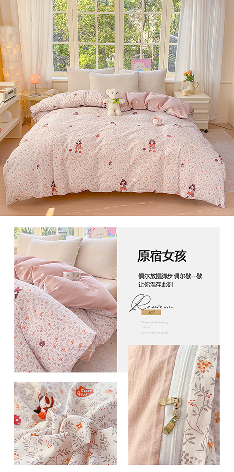 • 91家纺网 家纺一手货源 找家纺 禧安居 2025新款高支高密活性印染全棉被套单被套(支持定制尺寸)原宿女孩