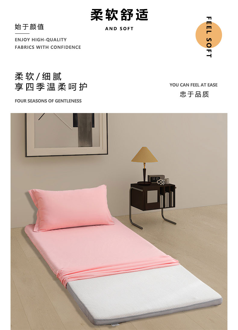 • 91家纺网 家纺一手货源 找家纺 啊雅家居 2026新款学生宿舍家用双面被褥套床垫套 粉色