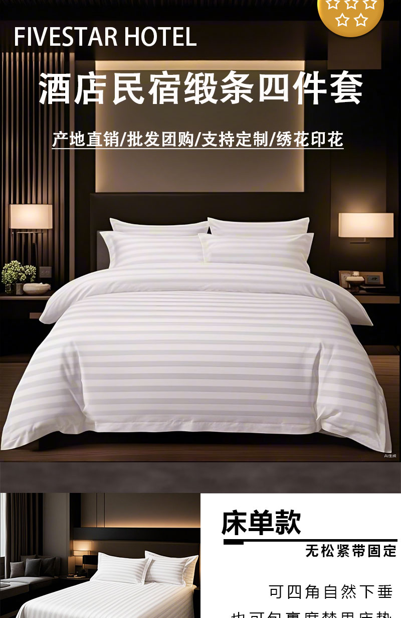 当前位置: 91家纺网 > 商品网购 > 床品套件 > 四件套 > 其它四件套 > 啊雅家居 2026新款民宿宾馆酒店客栈缎条四件套 缎条飞边款