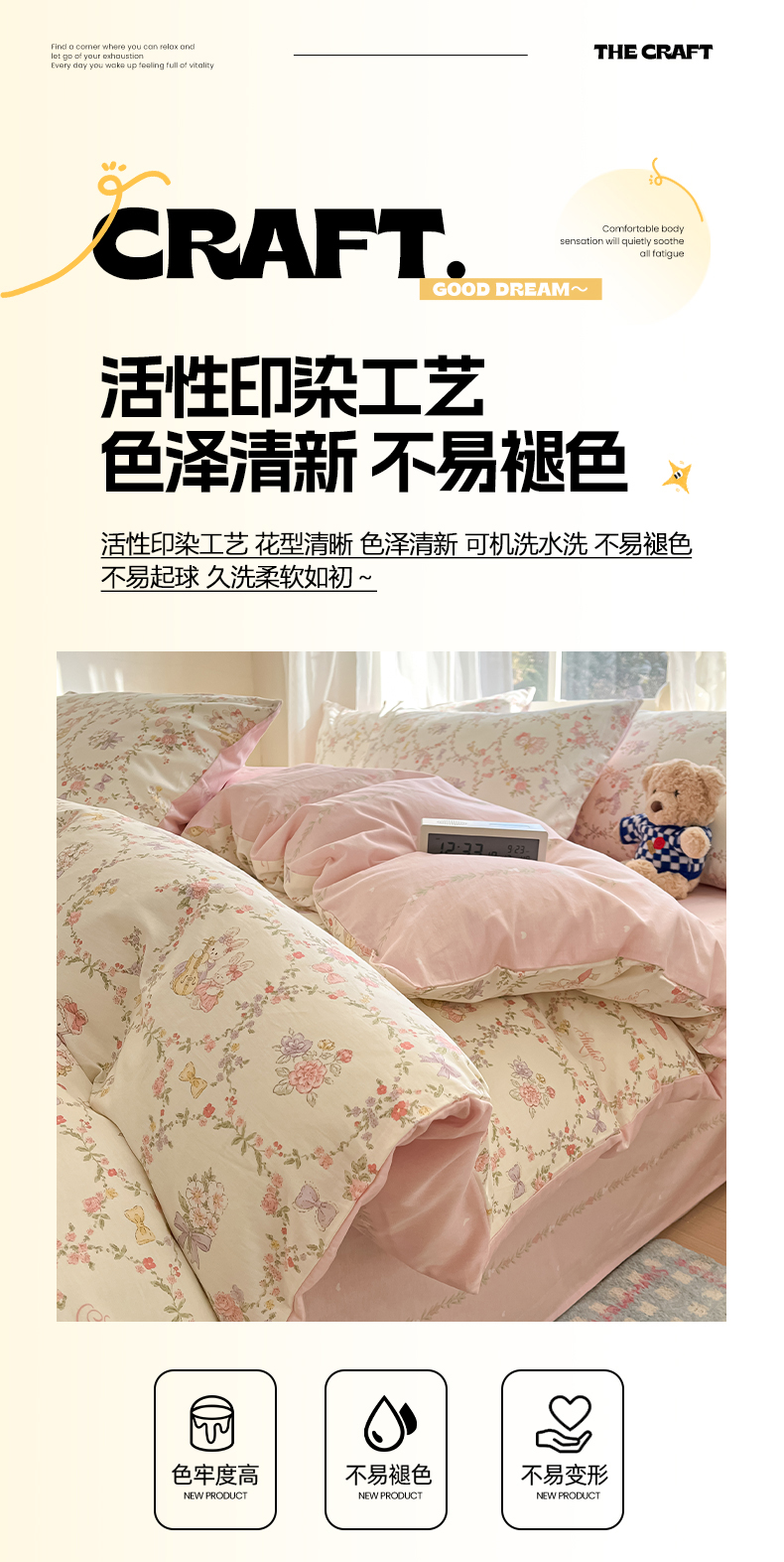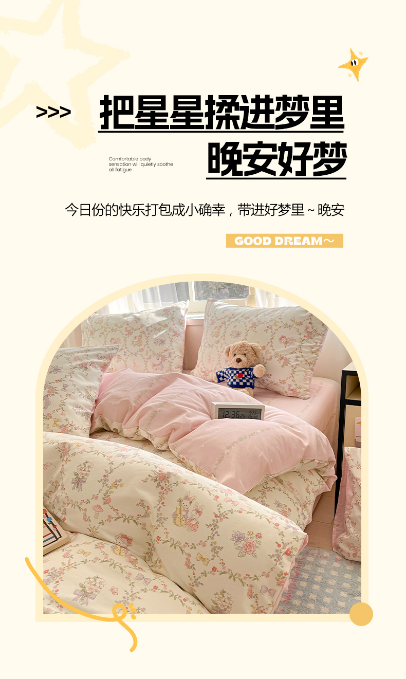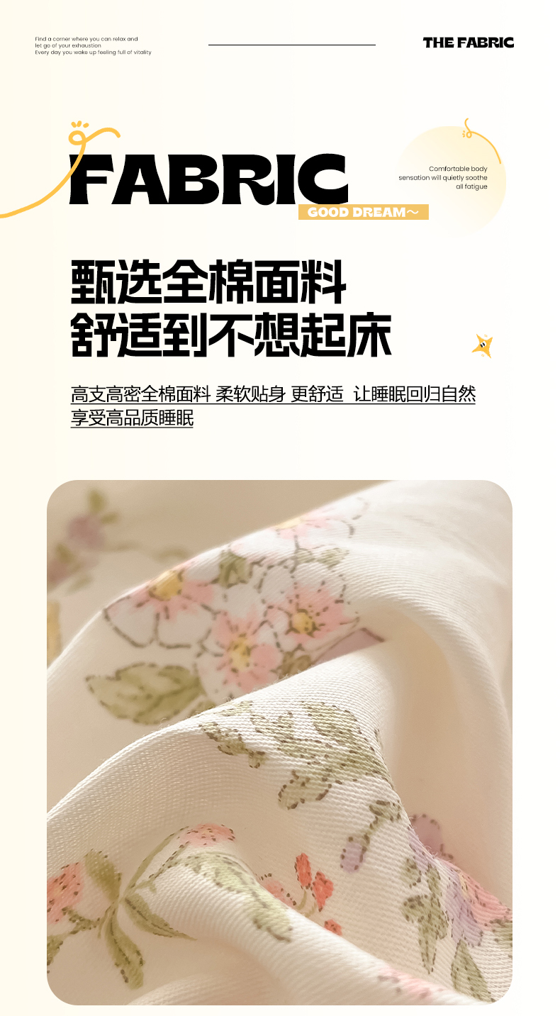 商品名称:吉象家纺 2026新款高支密全棉印花四件套 童话花町