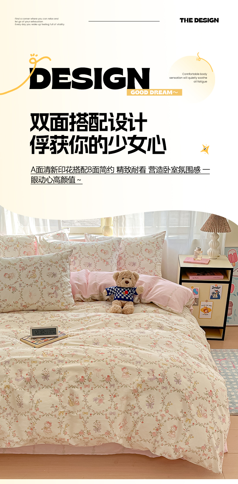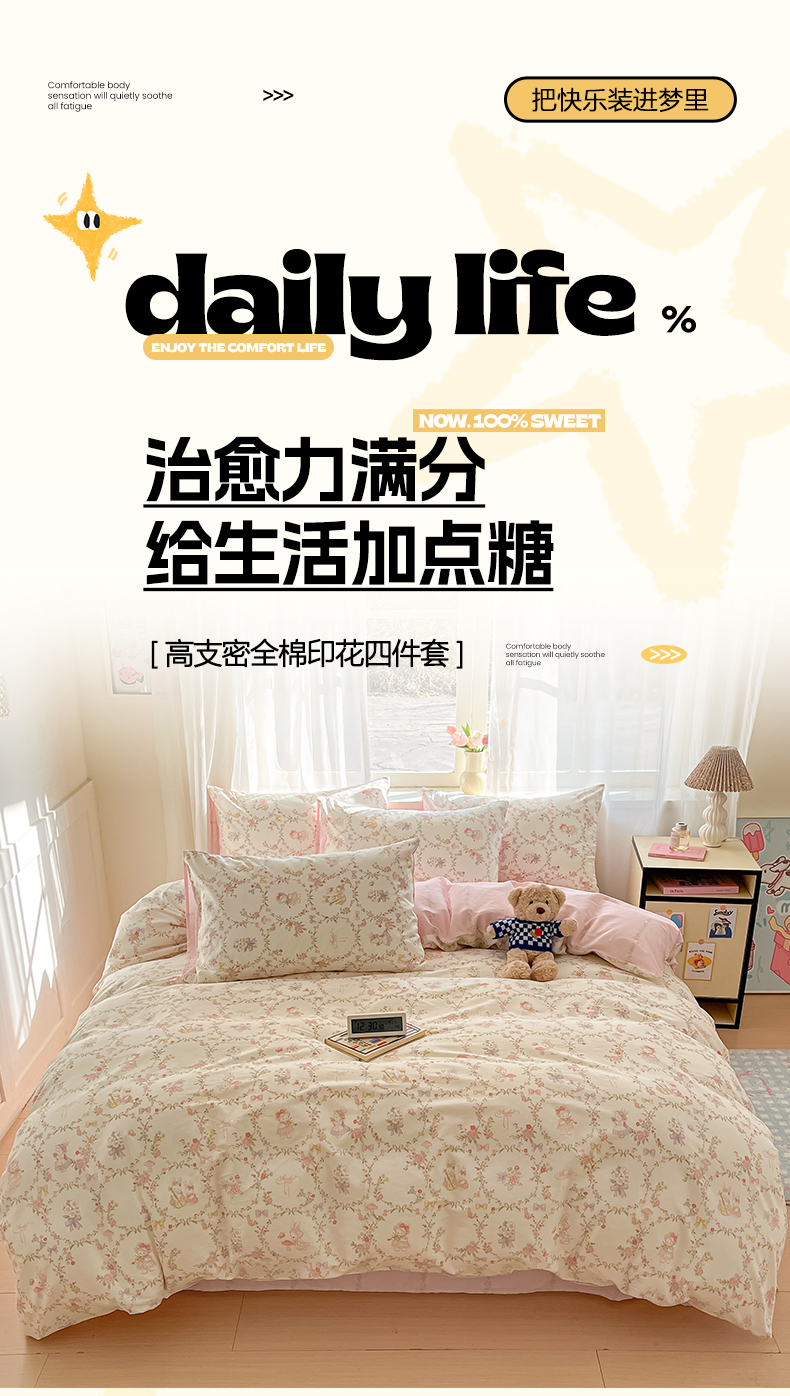 吉象家纺 2026新款高支密全棉印花四件套 童话花町