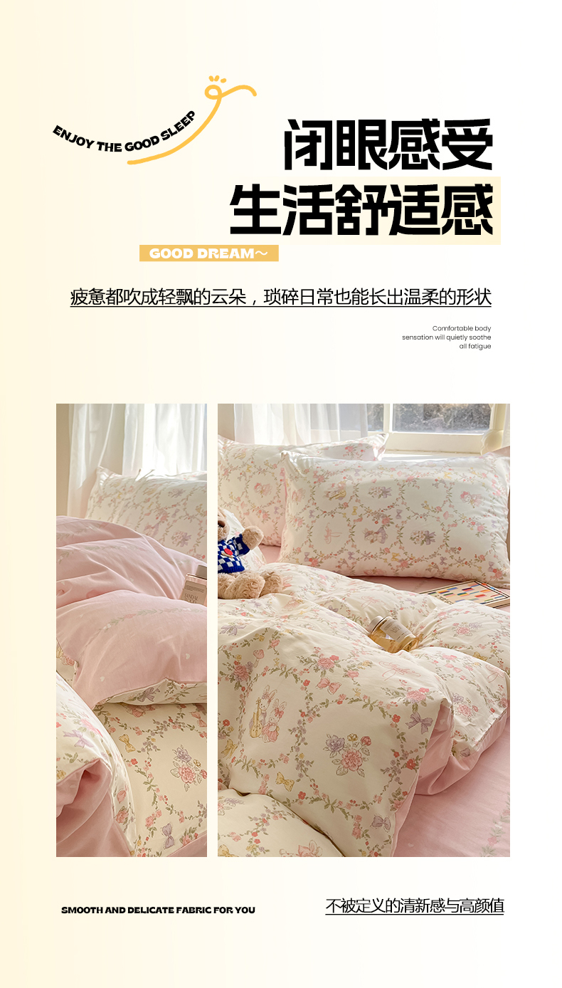 (总)吉象家纺 2024新款全棉双层纱四件套叠拍田园风直播电商品质优选,草莓小兔,粉郁,国风,花千朵,花枝兔,露娜,奶油派,晴天,运动小熊,紫郁