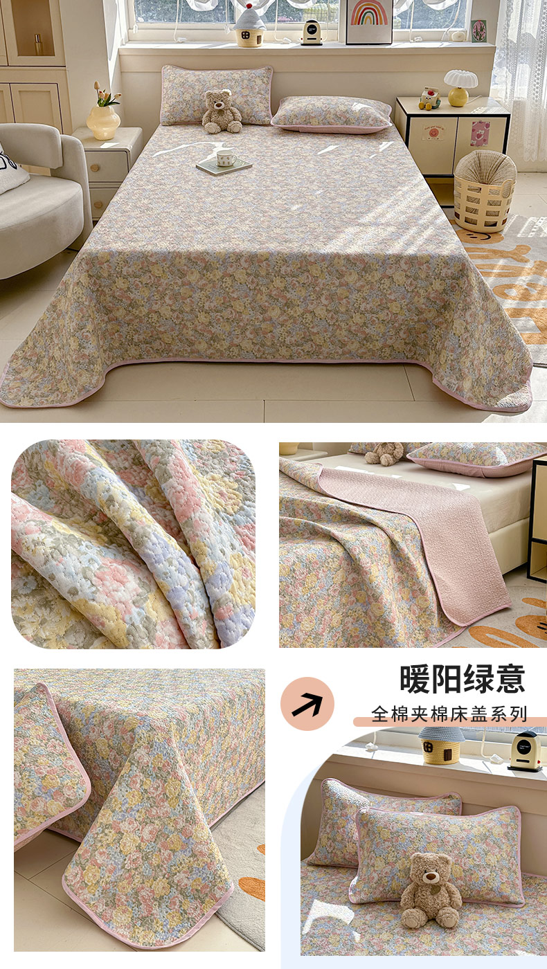 绵庭家纺 2025新款双面全棉夹棉床盖 暖阳绿意
