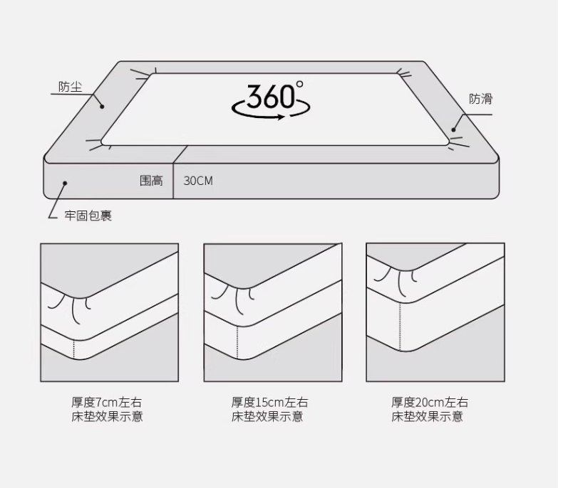 (总)居眠 2025新款安睡-防水棉花床笠,安睡-白,安睡-卡,安睡-灰,安睡-蓝,安睡-粉