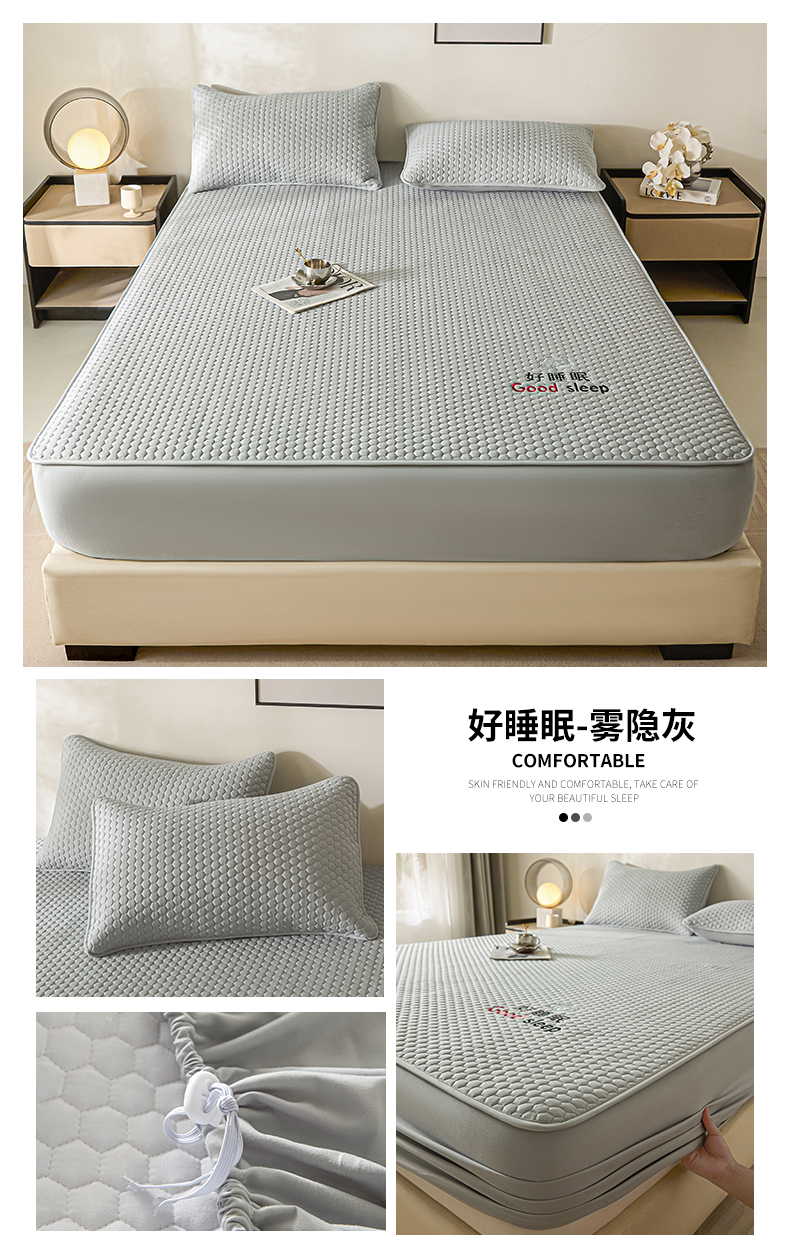 (总)居眠 2025新款防水夹棉床笠-清雅,清雅-粉色,清雅-灰色,清雅-卡其,清雅-绿色,清雅-米白,清雅-深蓝
