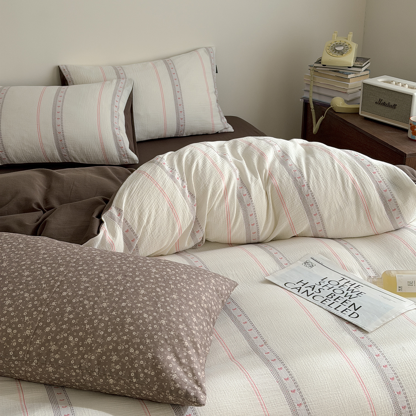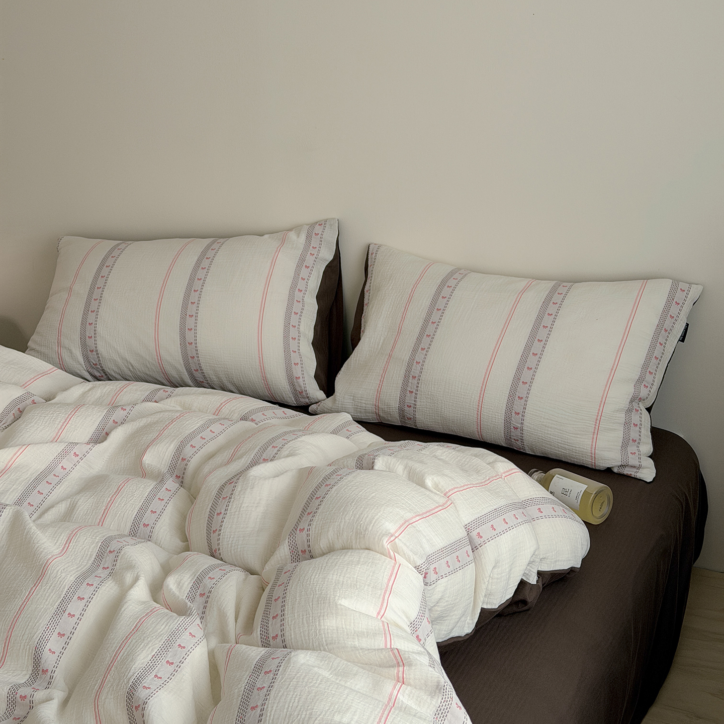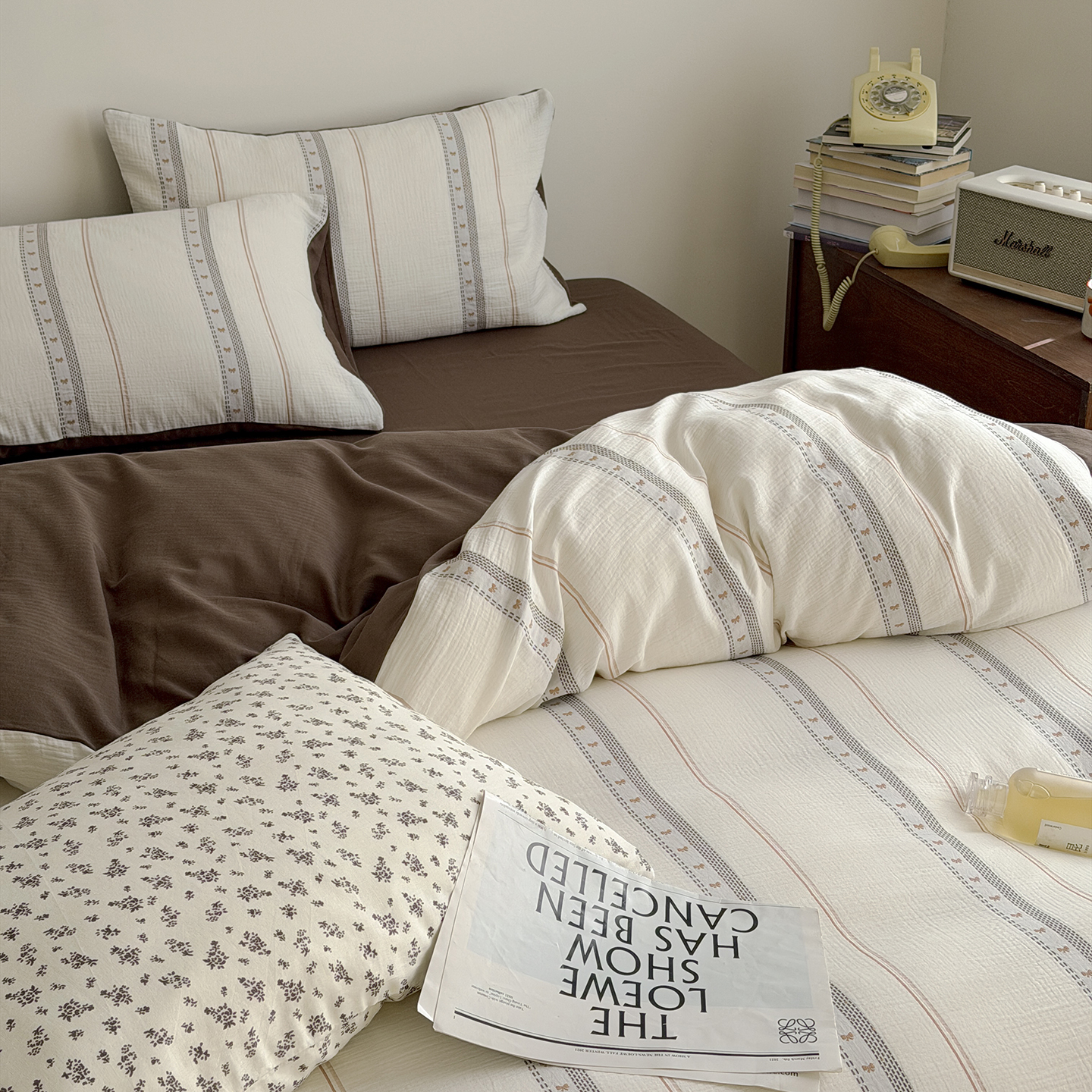 当前位置: 91家纺网 > 商品网购 > 床品套件 > 四件套 > 双层纱四件套 > 蜜宿 2026新款全棉水洗双层纱提花四件套-甜茶 甜茶-粉