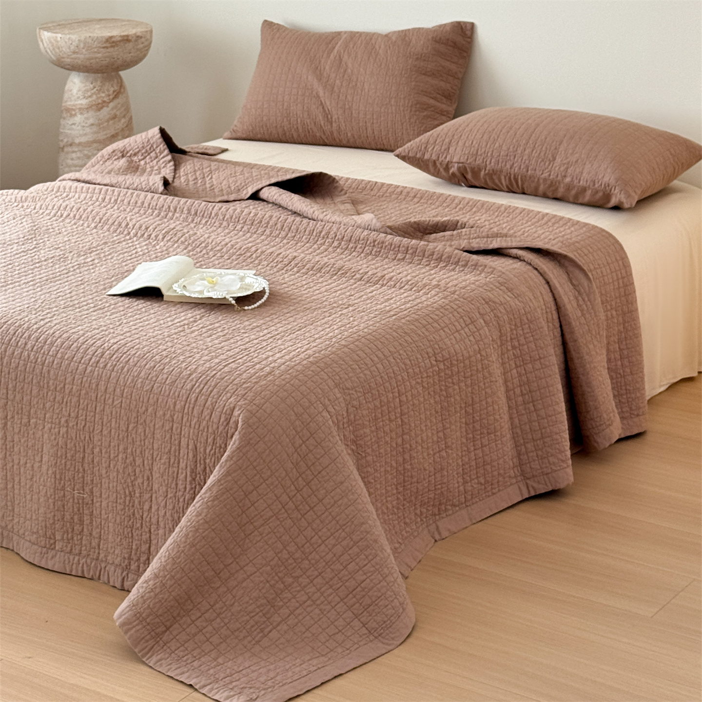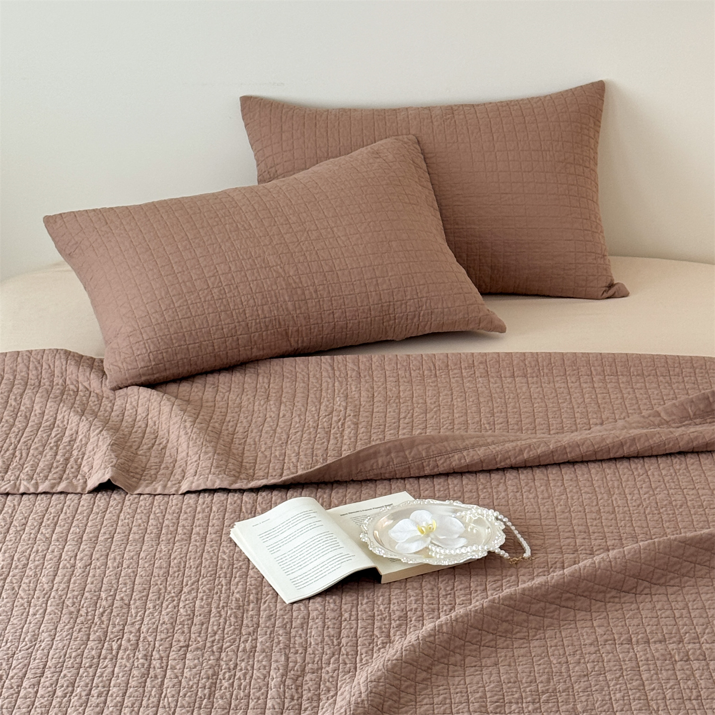 (总)床盖工厂店 2026新款双面全棉水洗棉花糖床盖三件套-米通格系列,米通格-灰色,米通格-咖色,米通格-浅绿,米通格-浅紫,米通格-玉色