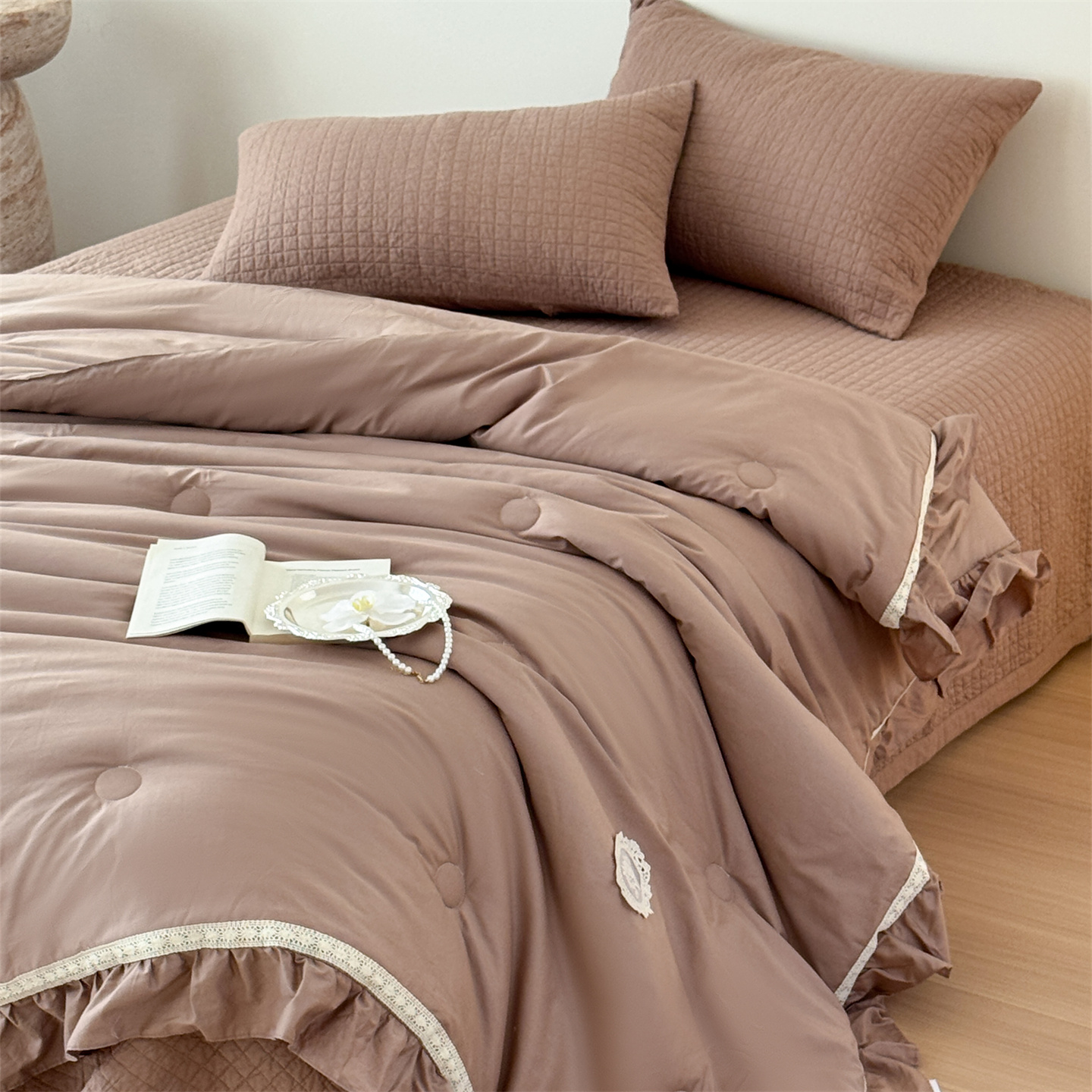 (总)床盖工厂店 2026新款小花边双面全棉填充棉花床盖三件套,组合图仅供展示不可下单,风雅小筑(咖),虹光兰花(兰),花下诗页,花园梦梦,简花影(咖),柯基小镇,洛莉,曼城蝴蝶,纽约樱桃(咖),瑞莎(蓝),若芷嫣(绿),温锦织(米),紫珠漫(咖)