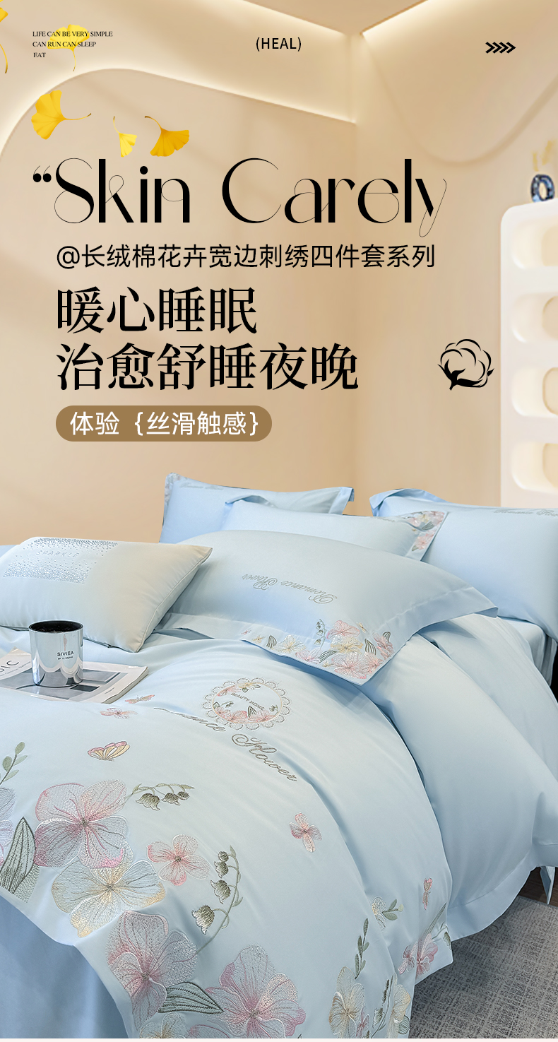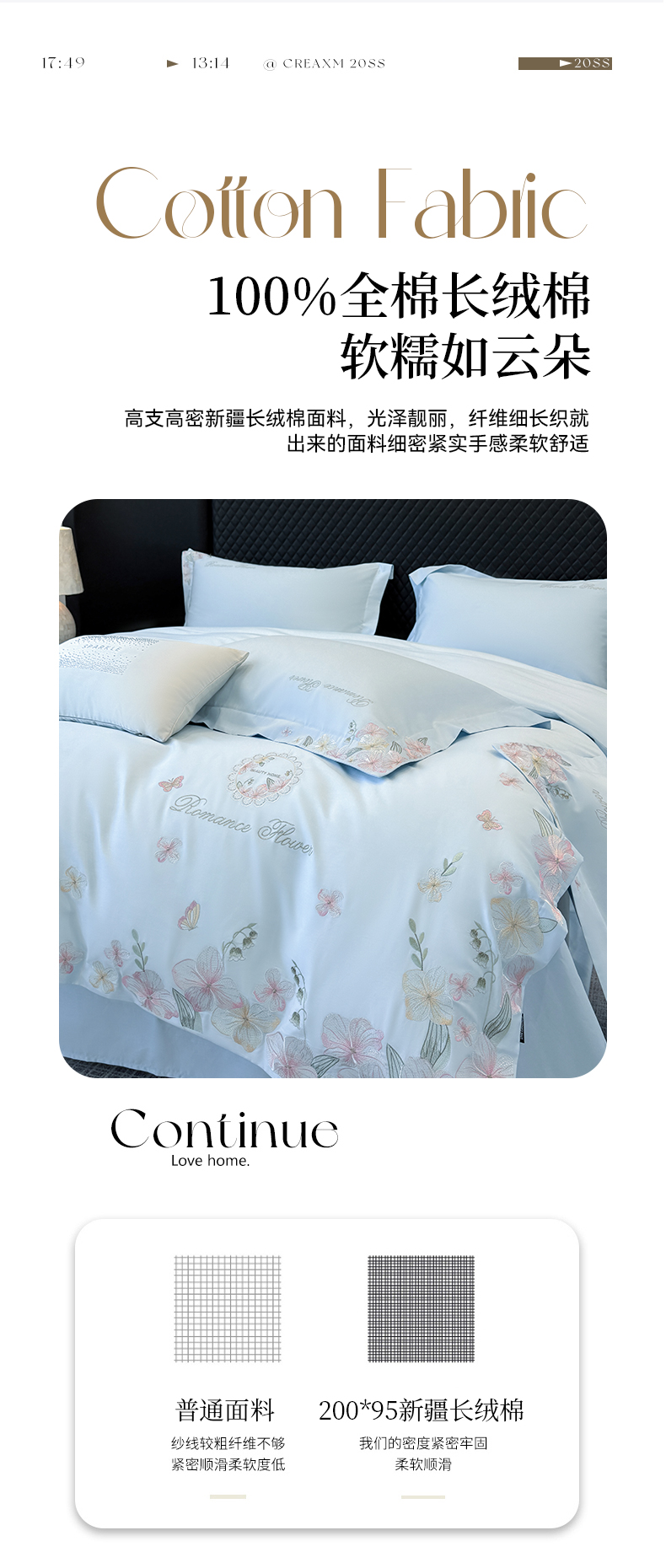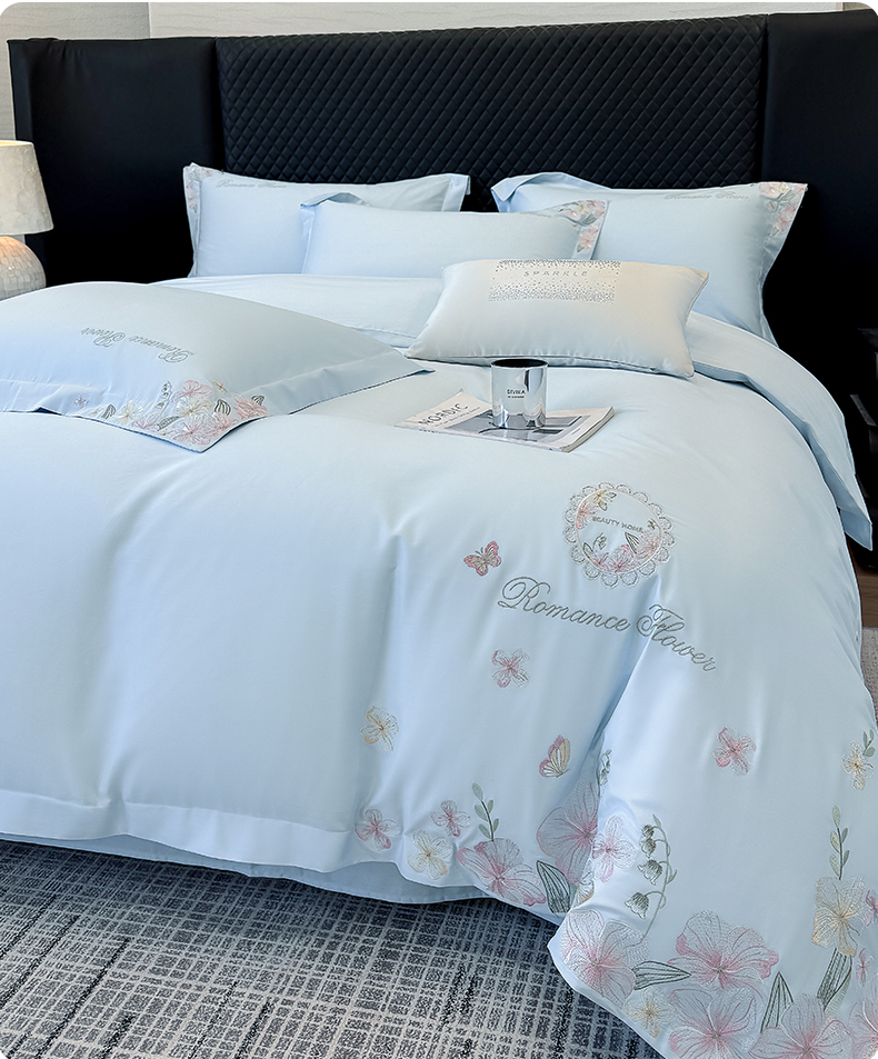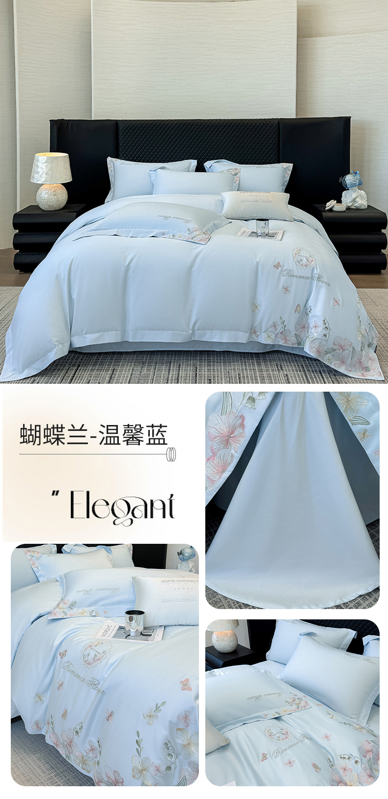 当前位置: 91家纺网 > 商品网购 > 床品套件 > 四件套 > 长绒棉四件套 > 家居1号家纺 2026新款长绒棉纯棉刺绣四件套-蝴蝶兰系列 蝴蝶兰-温馨蓝