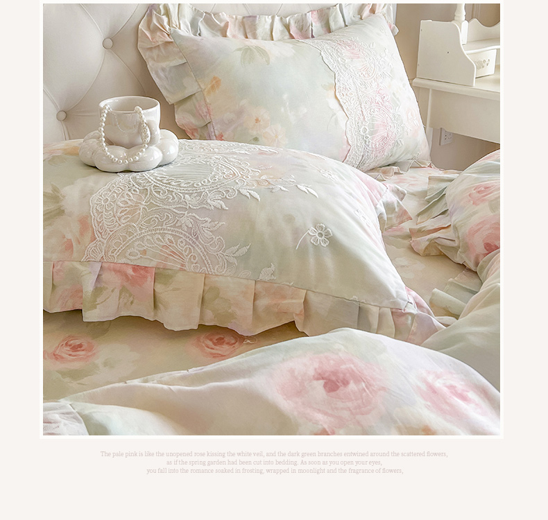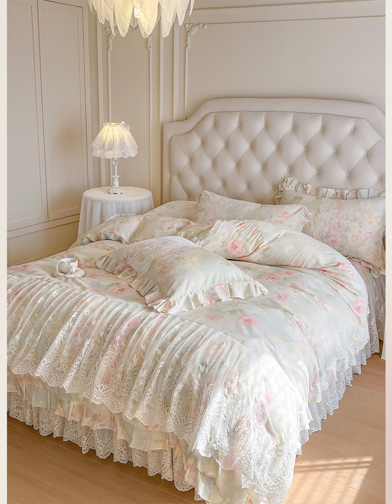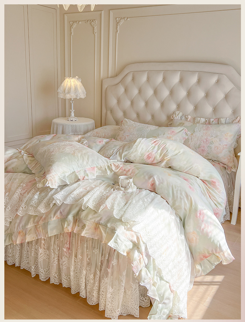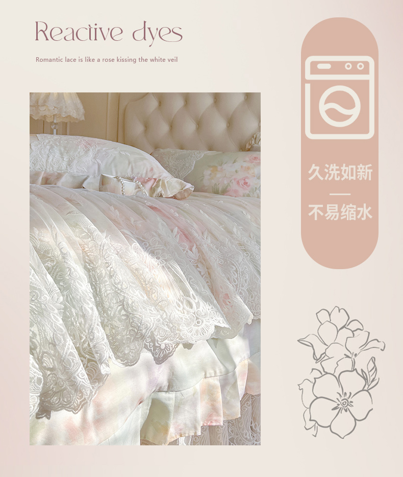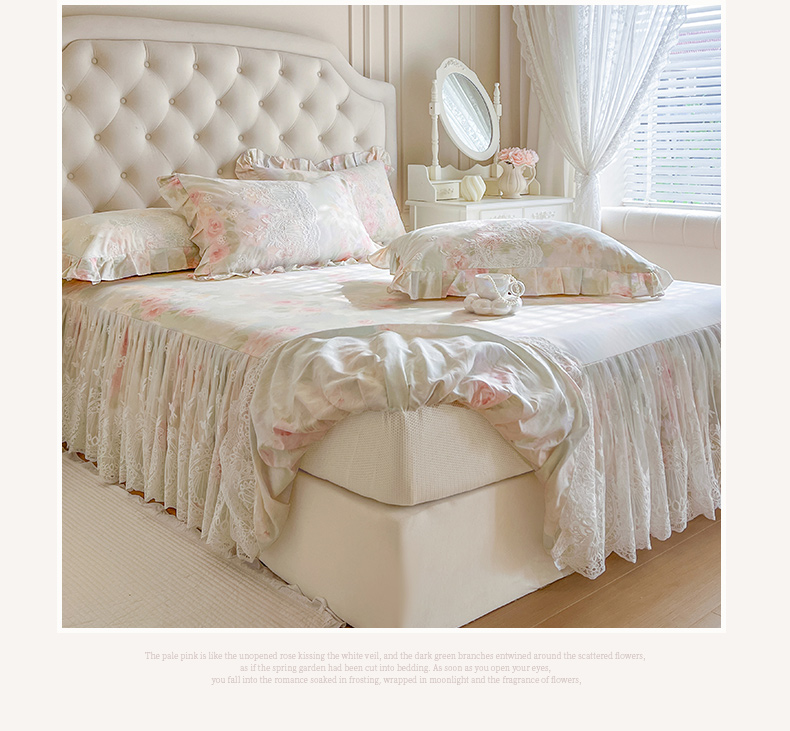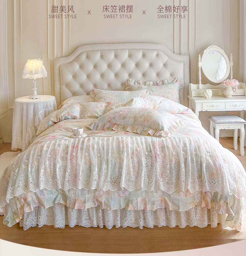 (总)恋尚 2025新款全棉纯棉蕾丝印花床笠裙四件套,芙微,花蝶语,花牺,蔓朵,浅栀,夏瑶,向朵,寻芳朵朵,荨花