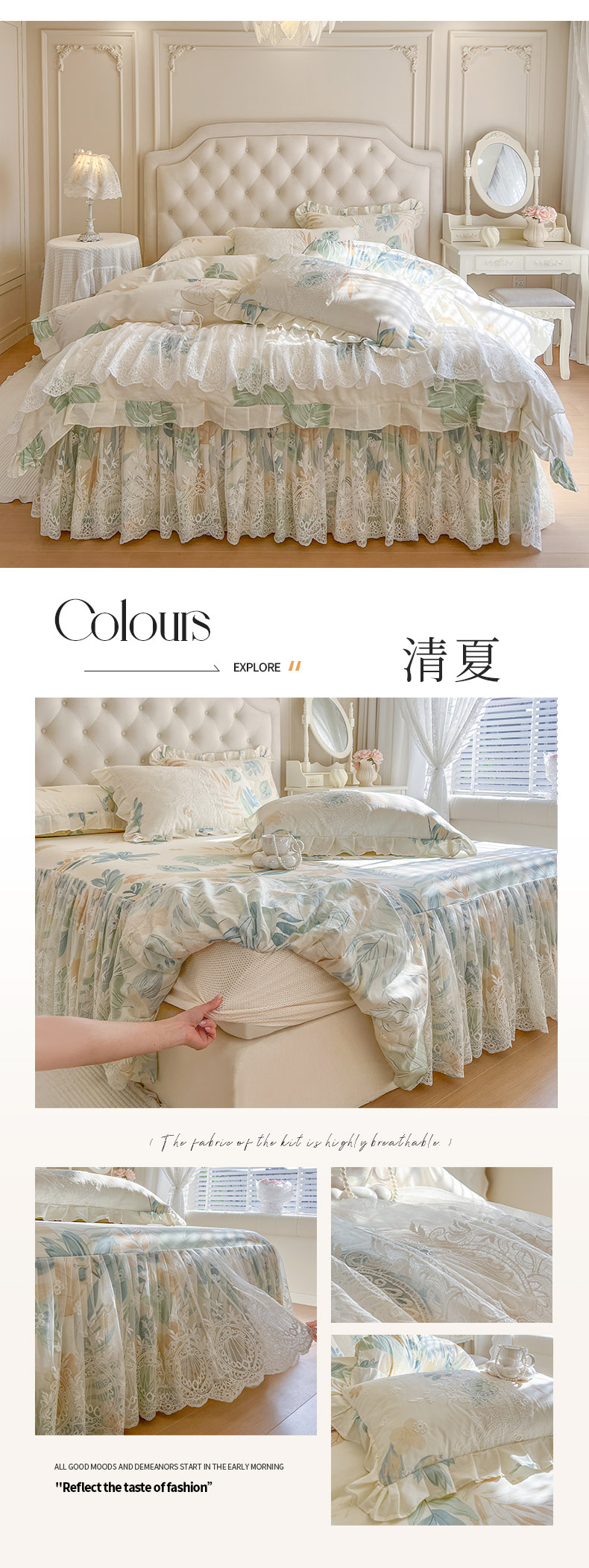 (总)恋尚 2025新款印花竹节纱床笠款床裙四件套(四件套控价220起),春野,花浅,花悦,莫婷,秋茉,甜梦