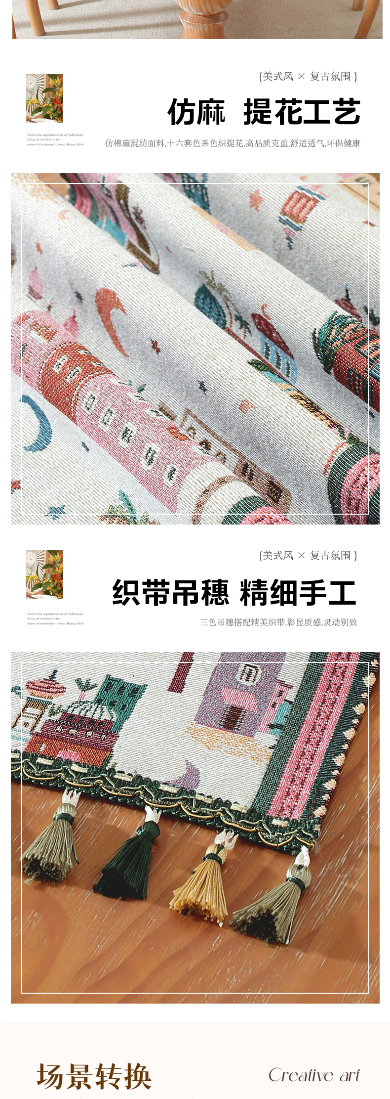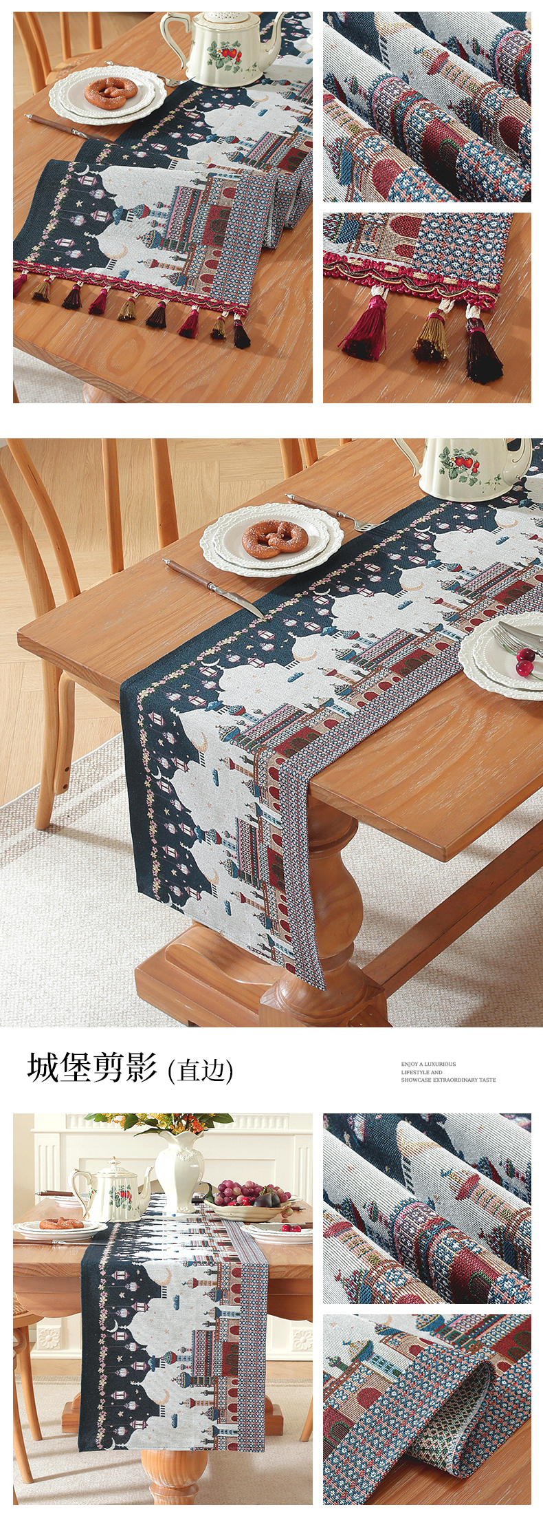 当前位置: 91家纺网 > 商品网购 > 居家布艺 > 餐桌布 > 南通大梧纺织 2026新款中东复古骆驼城堡窗花桌旗 城堡剪影(红织穗)