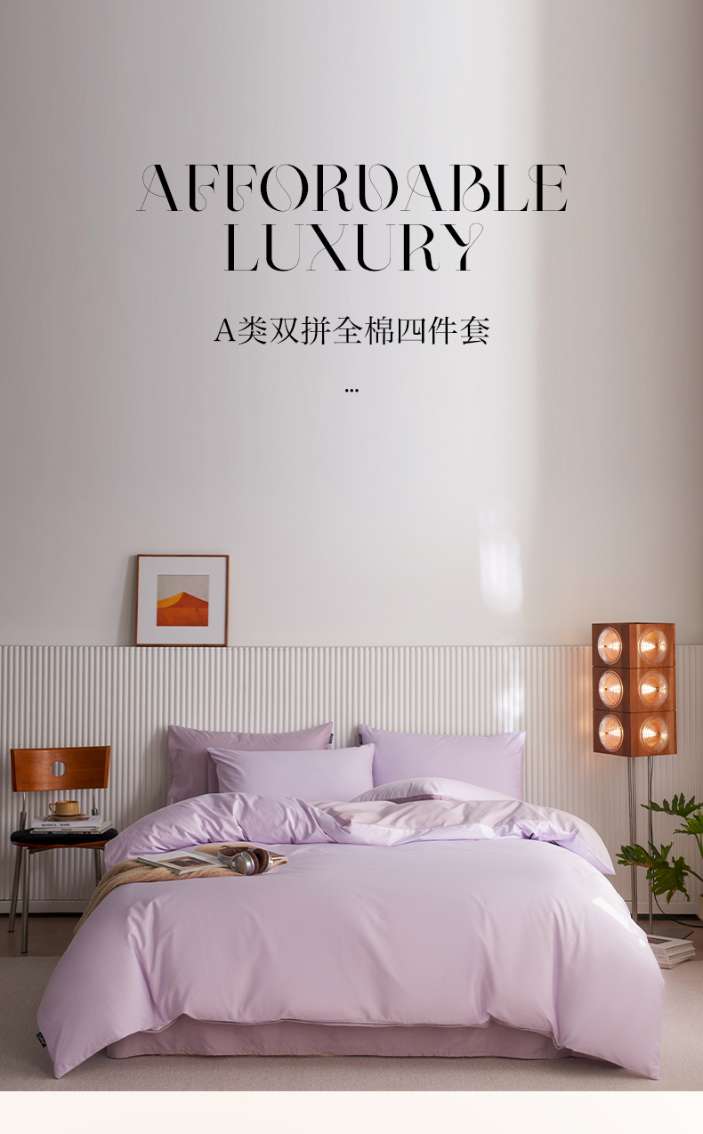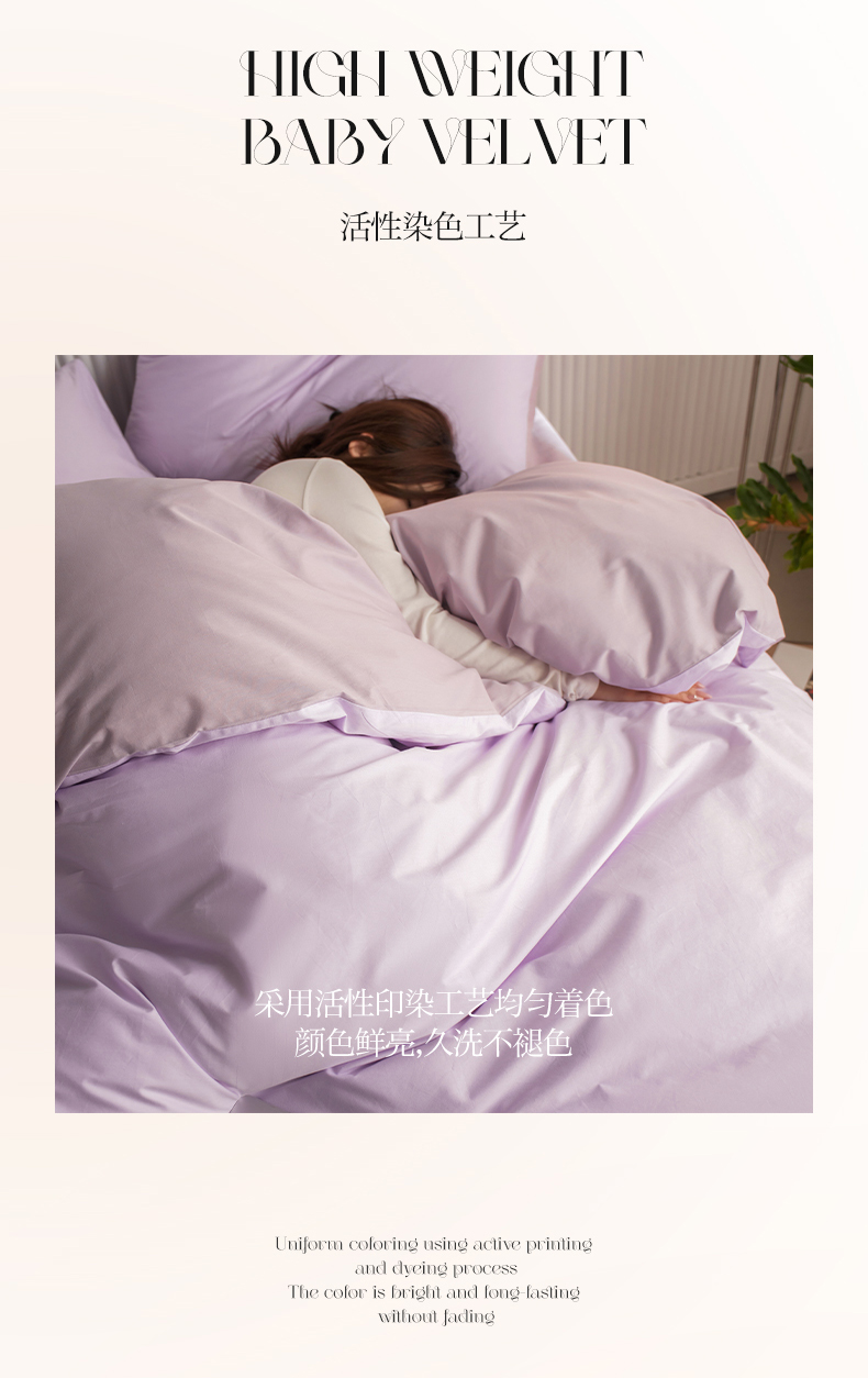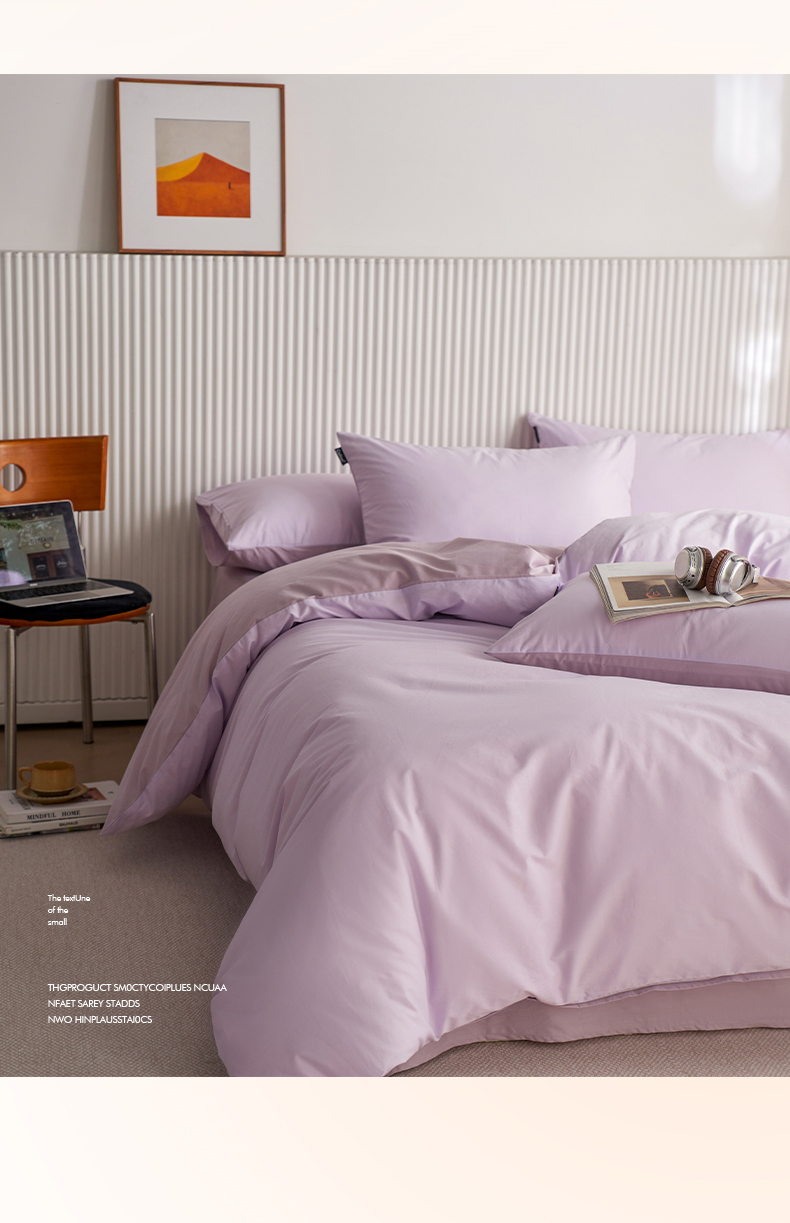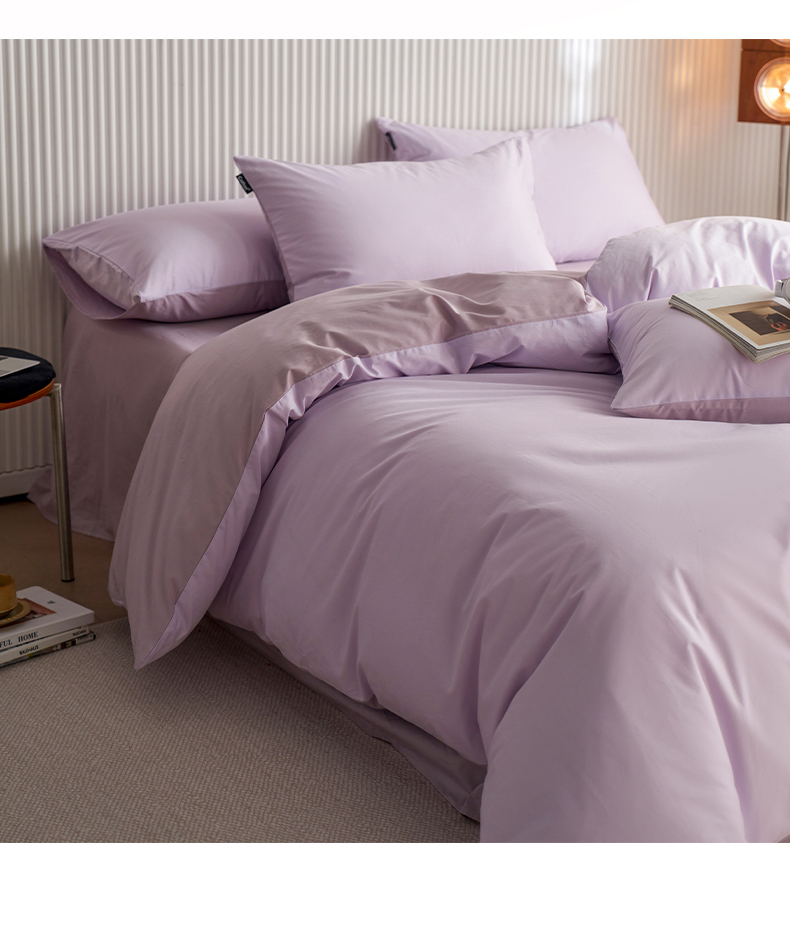 当前位置: 91家纺网 > 商品网购 > 床品套件 > 四件套 > 全棉普通四件套 > 小懒猪 2026新款13372A类双拼纯色全棉纯棉四件套 (提供买家秀) 粉紫-香芋紫