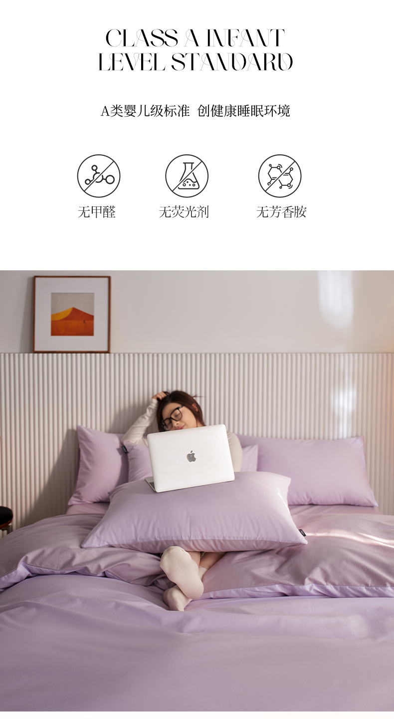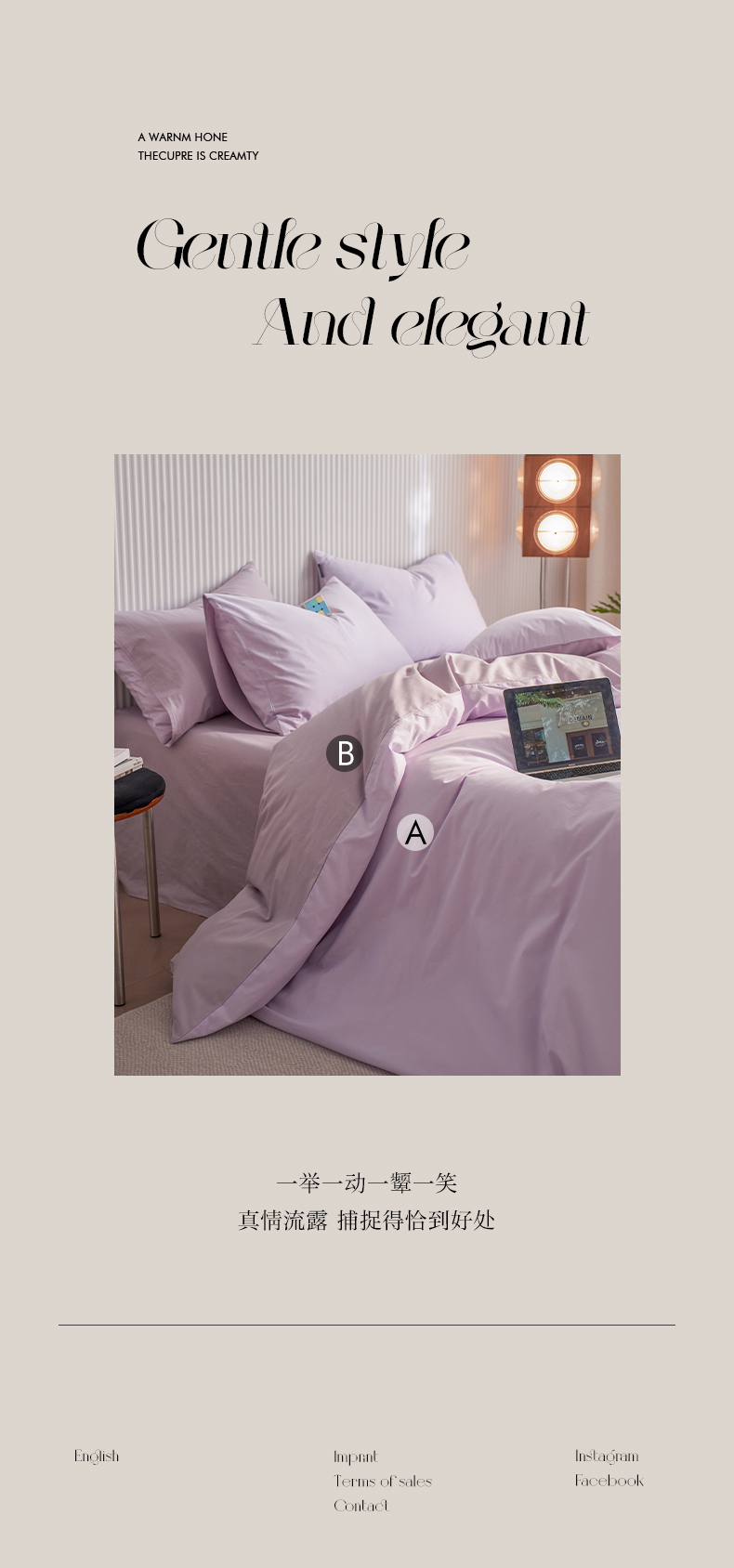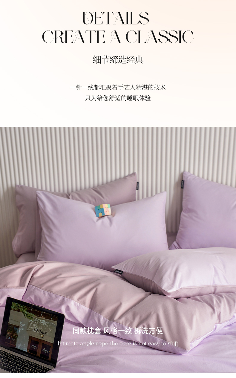 当前位置: 91家纺网 > 商品网购 > 床品套件 > 四件套 > 全棉普通四件套 > 小懒猪 2026新款13372A类双拼纯色全棉纯棉四件套 (提供买家秀) 粉紫-香芋紫