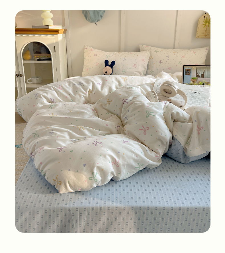 (总)瑞莱 2026新款A类全棉纯棉有氧双层纱四件套,白熊小姐,彩色木马,淡彩花笺,费尔岛小熊,焦糖奶汪-桔,焦糖奶汪-绿,萌星,苹果星星人,小樱桃,樱桃画报