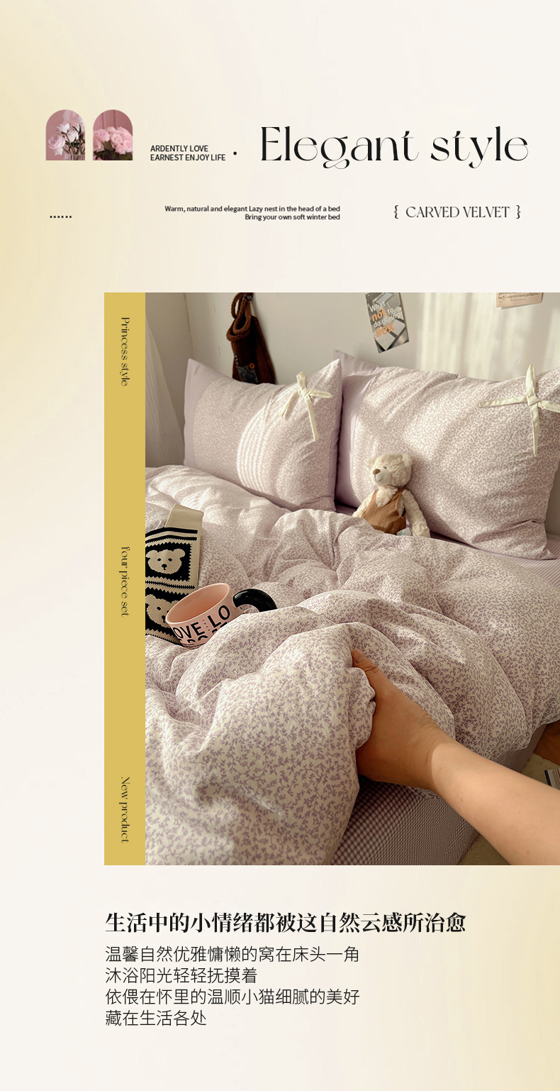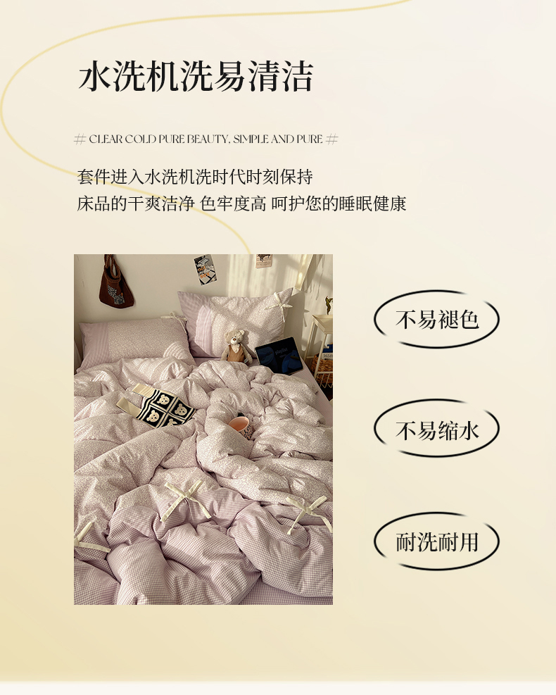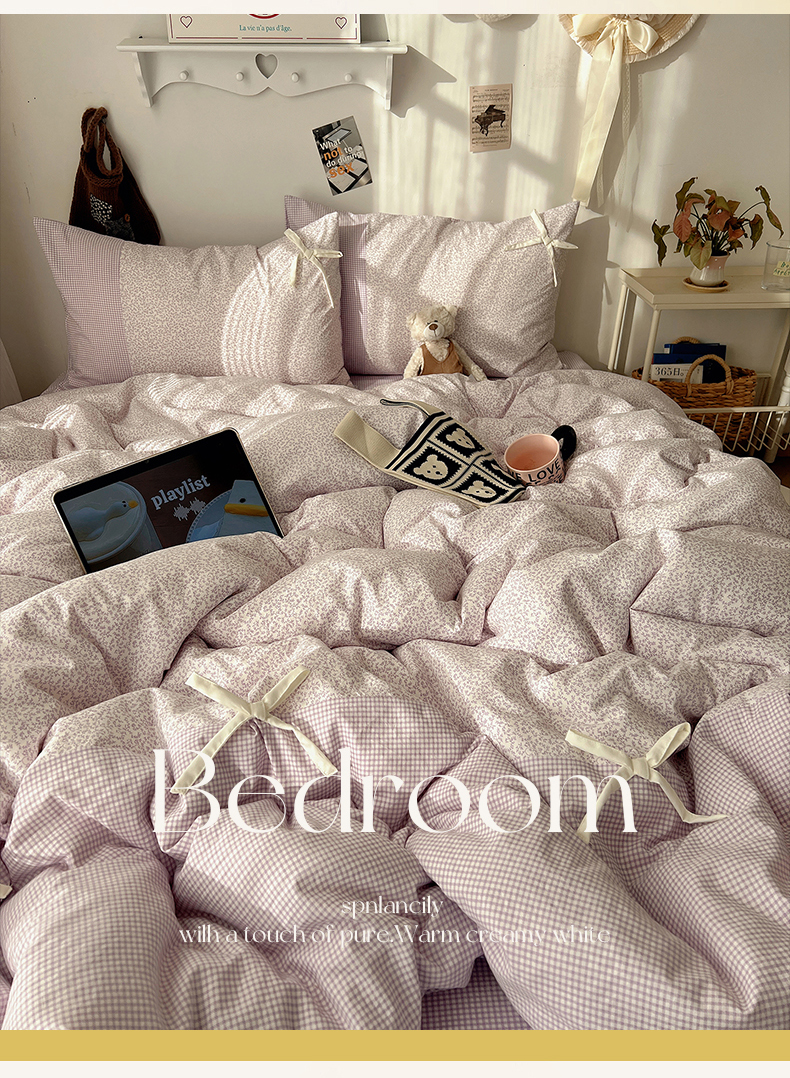 当前位置: 91家纺网 > 商品网购 > 床品套件 > 四件套 > 水洗棉四件套 > 沐芷 2026 【提供买家秀】公主风蝴蝶结A类古法水洗仿棉四件套床上用品三件套被套床单 公主蝴蝶结-紫