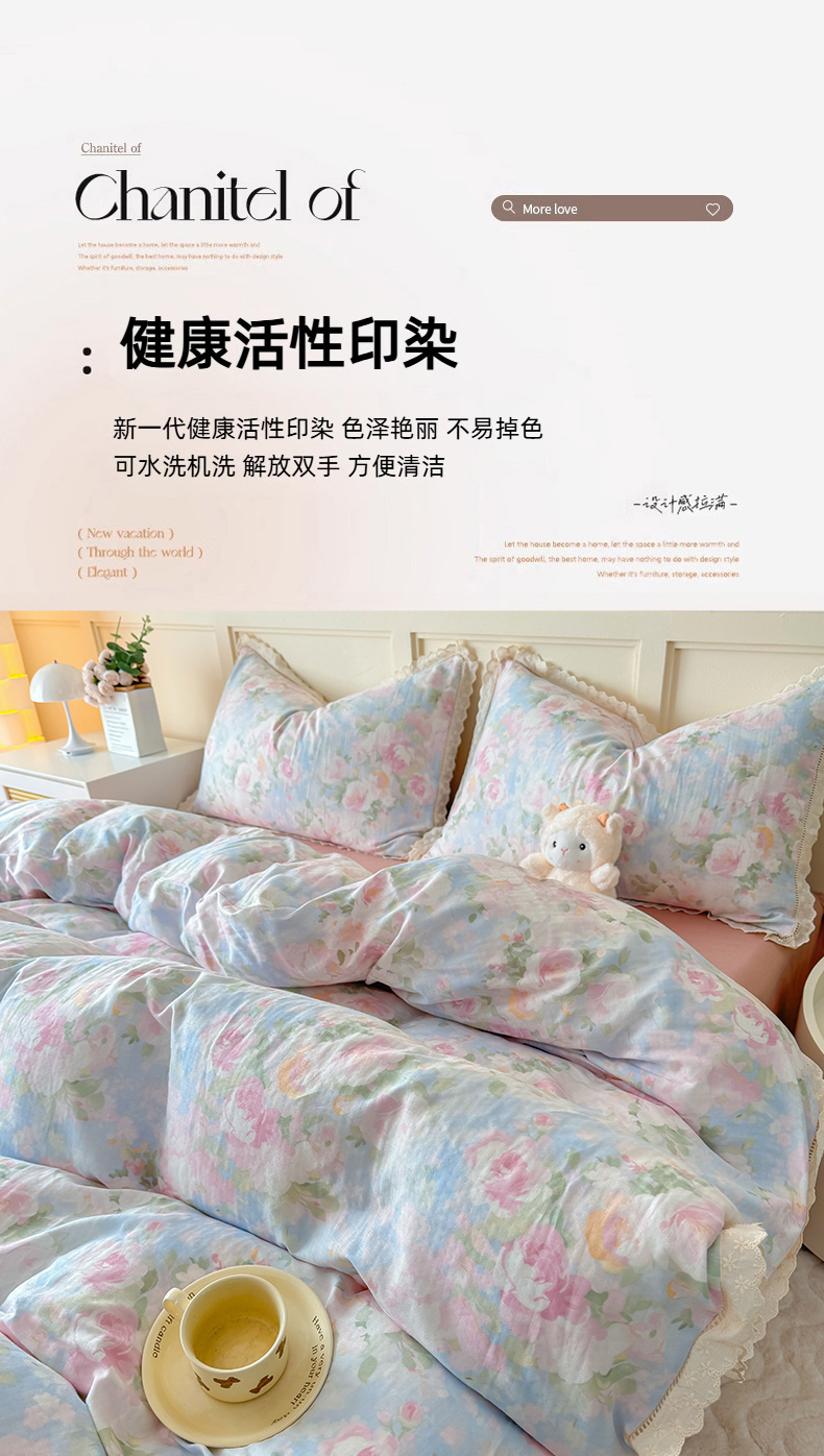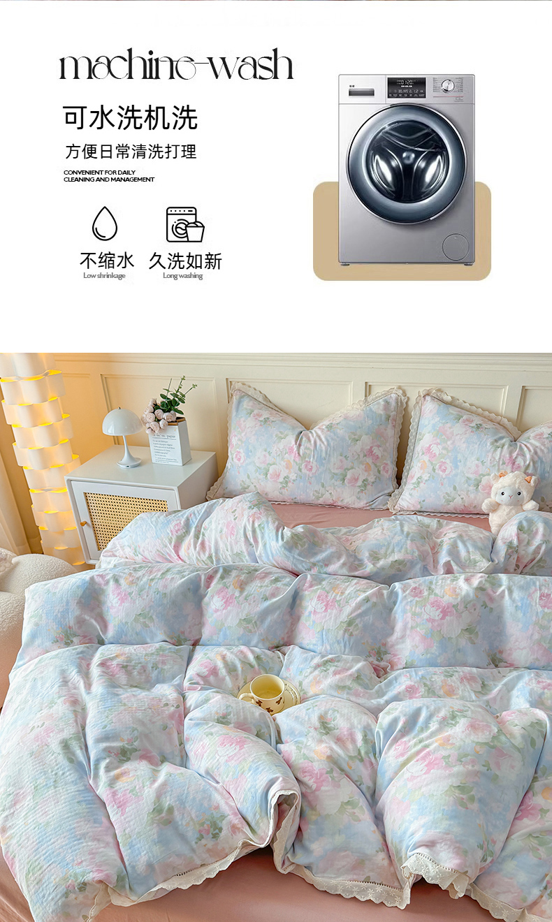 (总)【苏东来】2026小清新韩版印花蕾丝花边皱皱棉工艺款拼接单夏被四件套韩式赫本碎花仙女荷叶边夏凉被子空调被双人春秋被可水洗,铃萝,清茶,花盏 ,冰莓粉,香草,木棉花,蝴蝶结