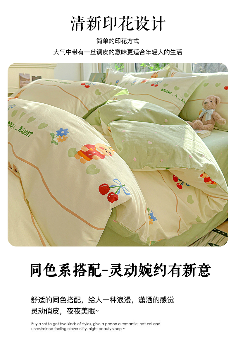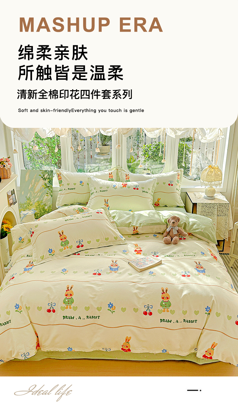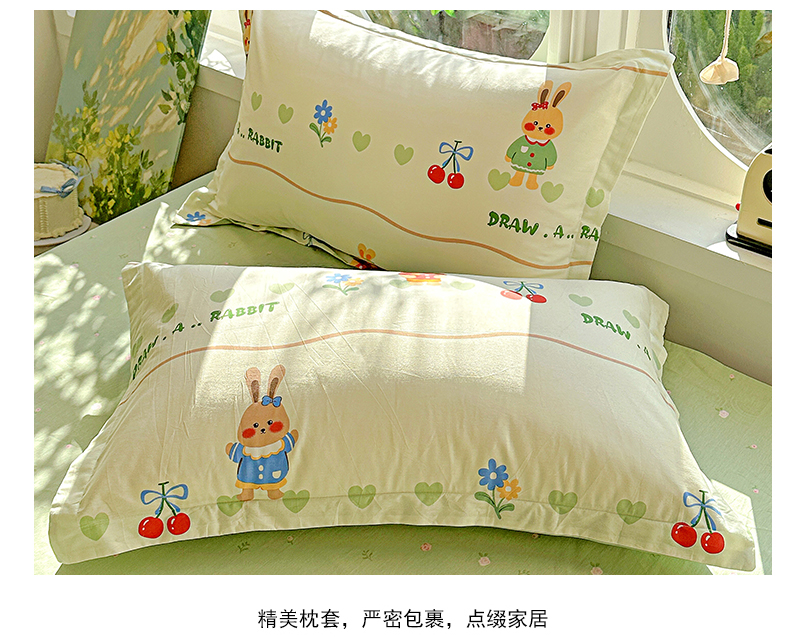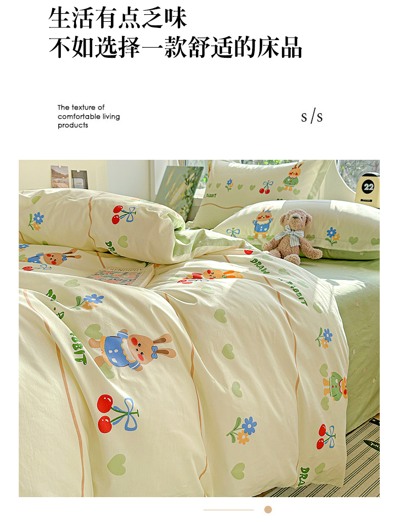 当前位置: 91家纺网 > 商品网购 > 床品套件 > 四件套 > 全棉普通四件套 > 恩泽家纺 2026春夏新款全棉纯棉12868印花四件套(提供买家秀,预留缩水率) 樱桃兔