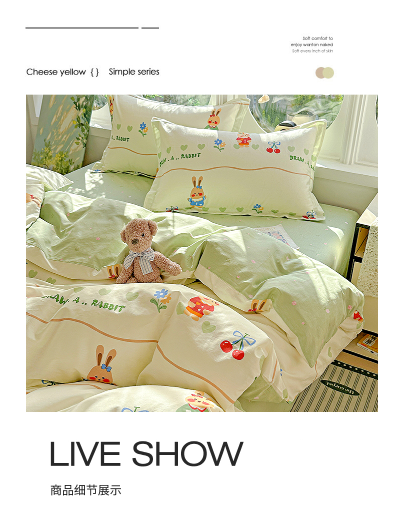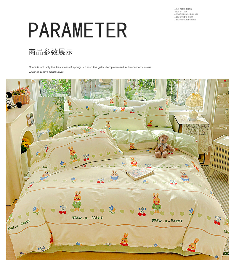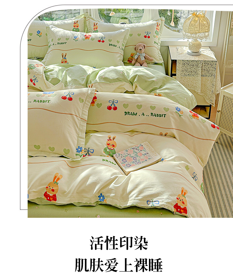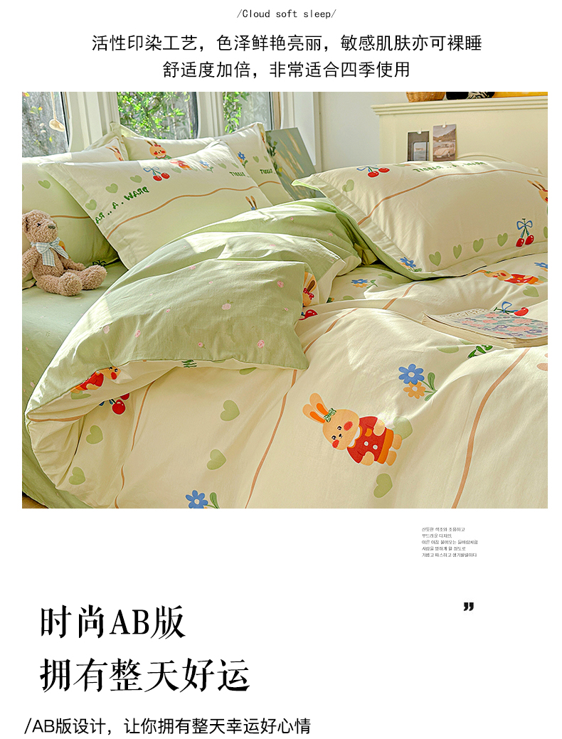 当前位置: 91家纺网 > 商品网购 > 床品套件 > 四件套 > 全棉普通四件套 > 恩泽家纺 2026春夏新款全棉纯棉12868印花四件套(提供买家秀,预留缩水率) 樱桃兔