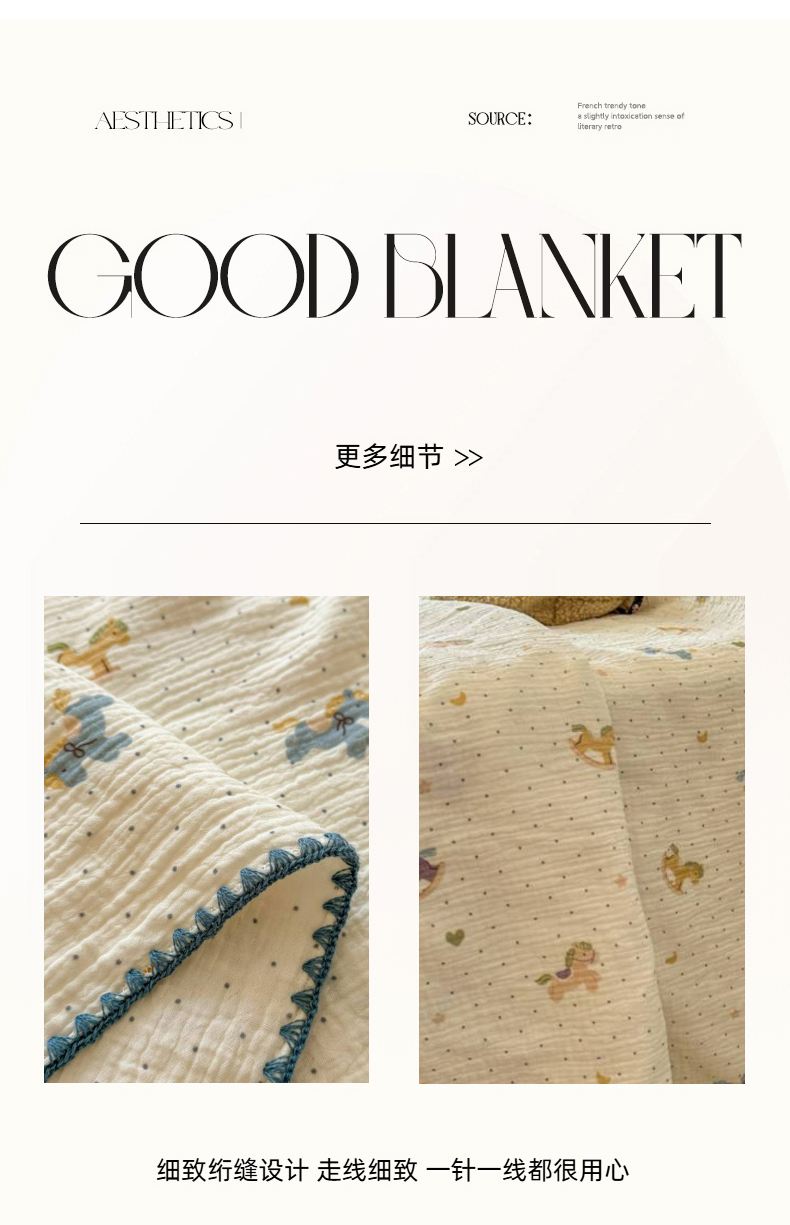 商品名称:十里居 2026新款A类母婴级全棉皱皱双层纱多功能盖毯 皱皱纱-波点小马