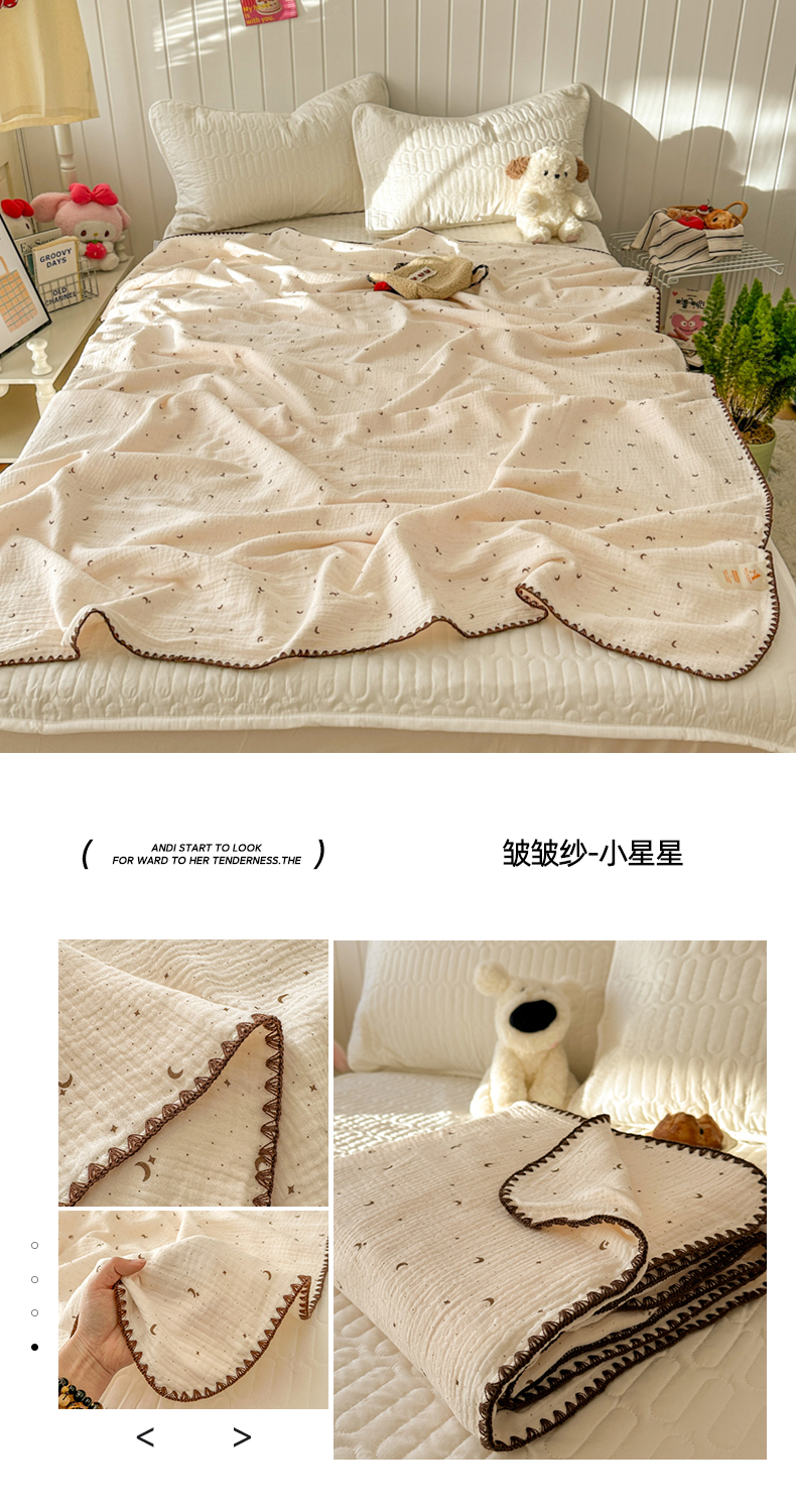 十里居 2026新款A类母婴级全棉皱皱双层纱多功能盖毯 皱皱纱-波点小马