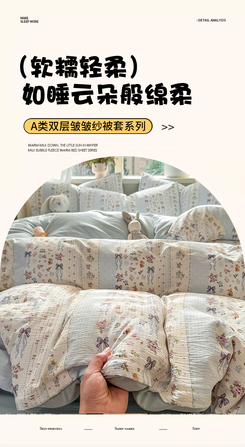 (总)丽美人家纺 2026新款双层皱皱纱大豆夹棉床笠单床笠床笠单件,JM花开漫漫,JM贝拉,JM布兰卡,JM粉格猫咪,JM格仔萌宠,JM可爱小狗,JM腊肠狗,JM乐园,JM玛丽,JM时光,JM月境骑踪,JM紫雾叶兔