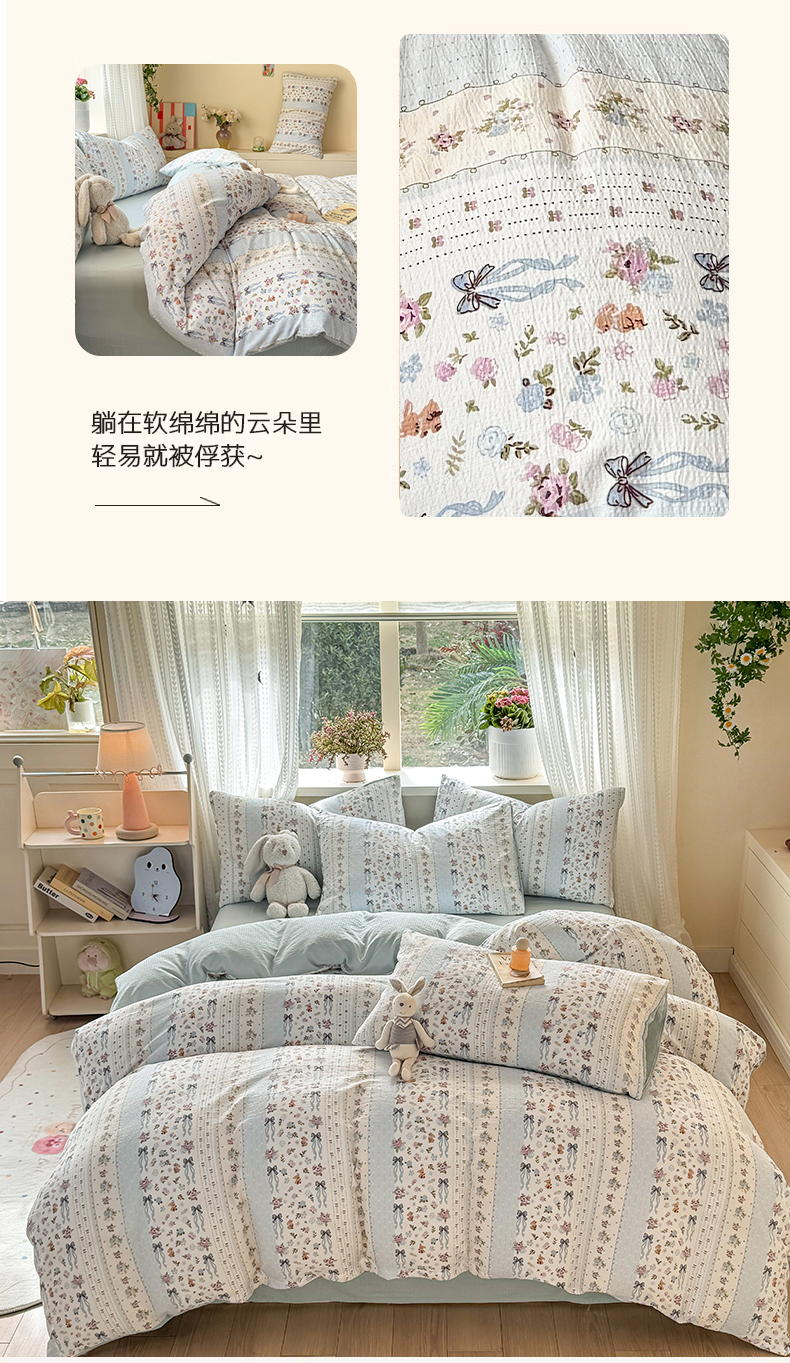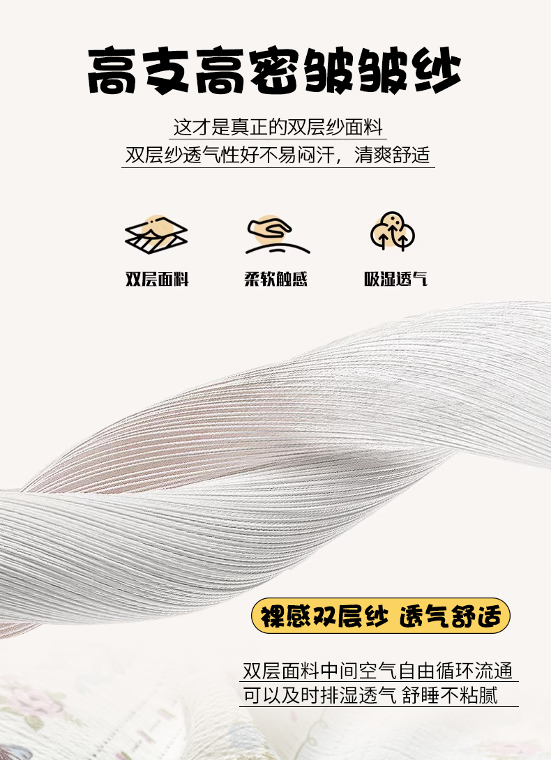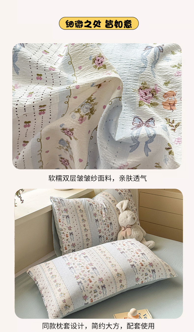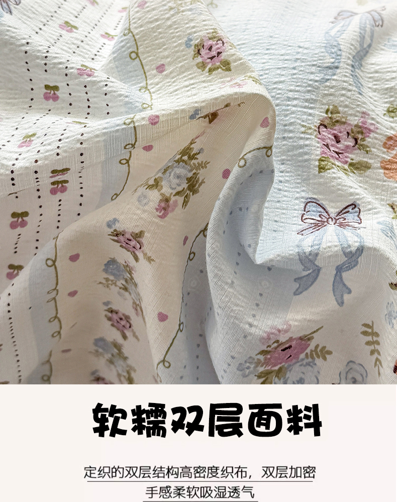 商品名称:丽美人家纺 2026新款A类皱皱纱双层印花单被套 BT花漫蝴蝶