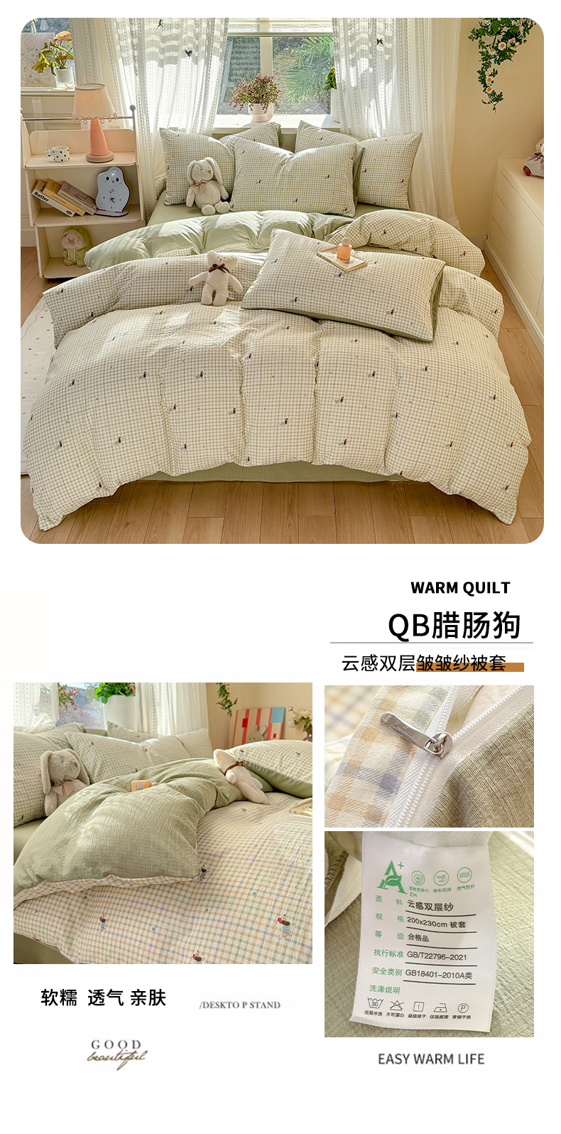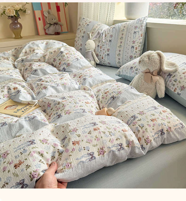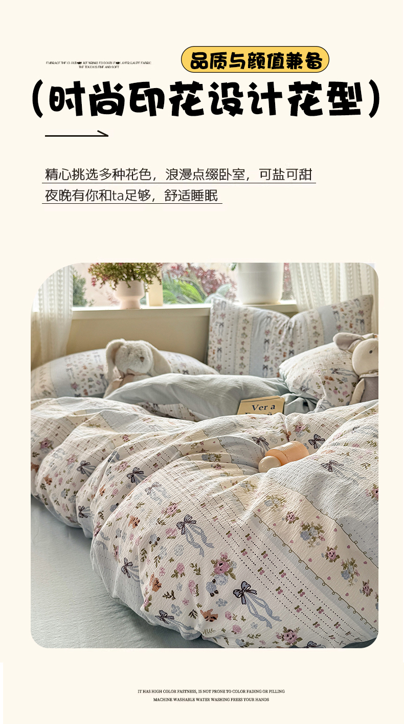 商品名称:丽美人家纺 2026新款A类皱皱纱双层印花单被套 BT花漫蝴蝶
