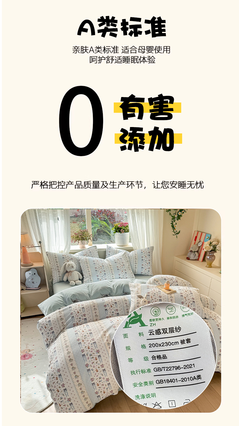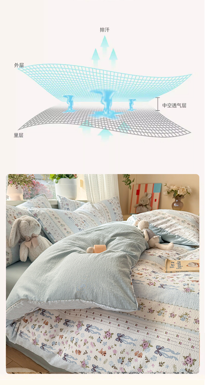 丽美人家纺 2026新款A类皱皱纱双层印花单被套 BT花漫蝴蝶
