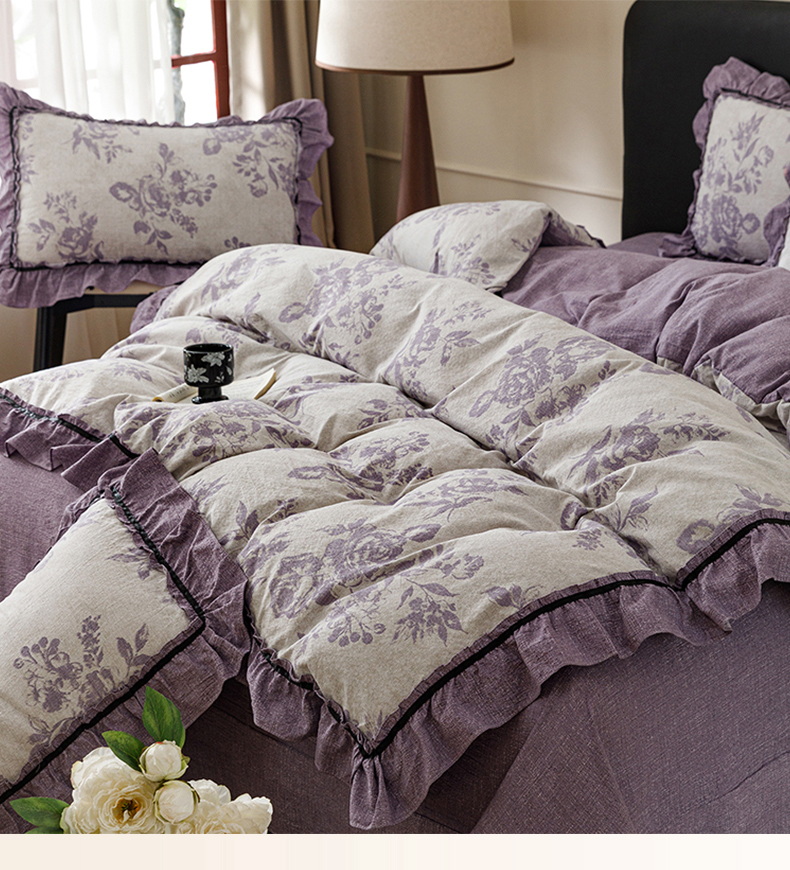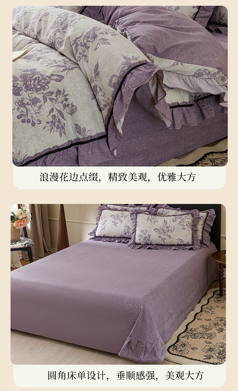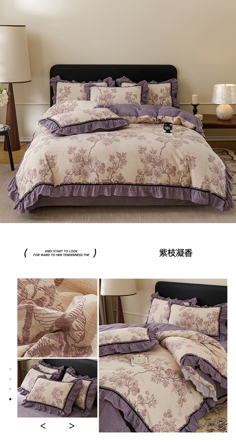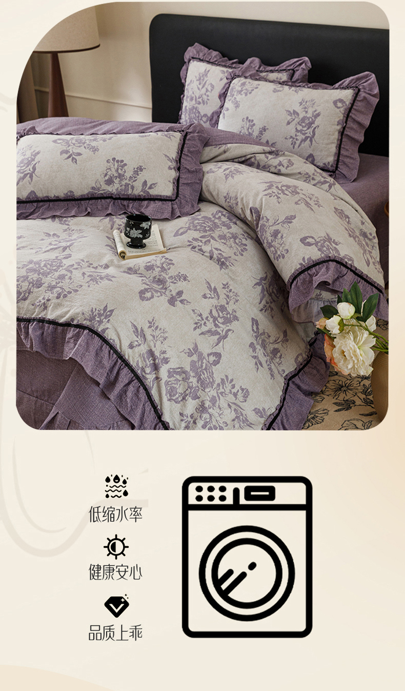 商品名称:悦然毛巾被 2026新款原麻水洗提花四件套 紫萝绮梦