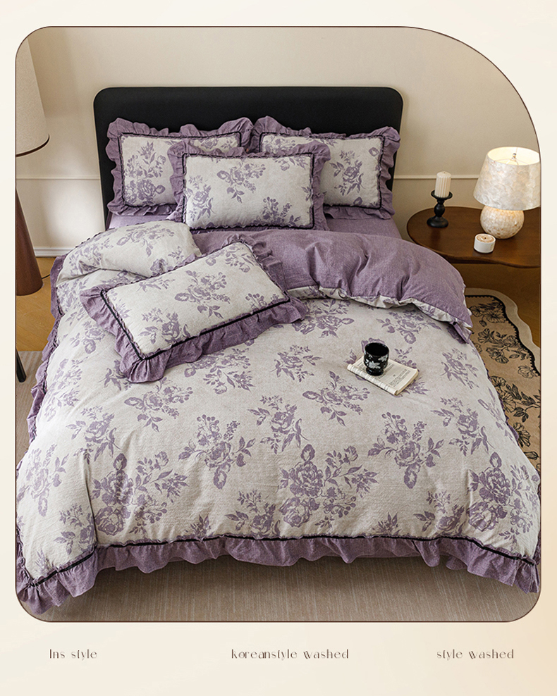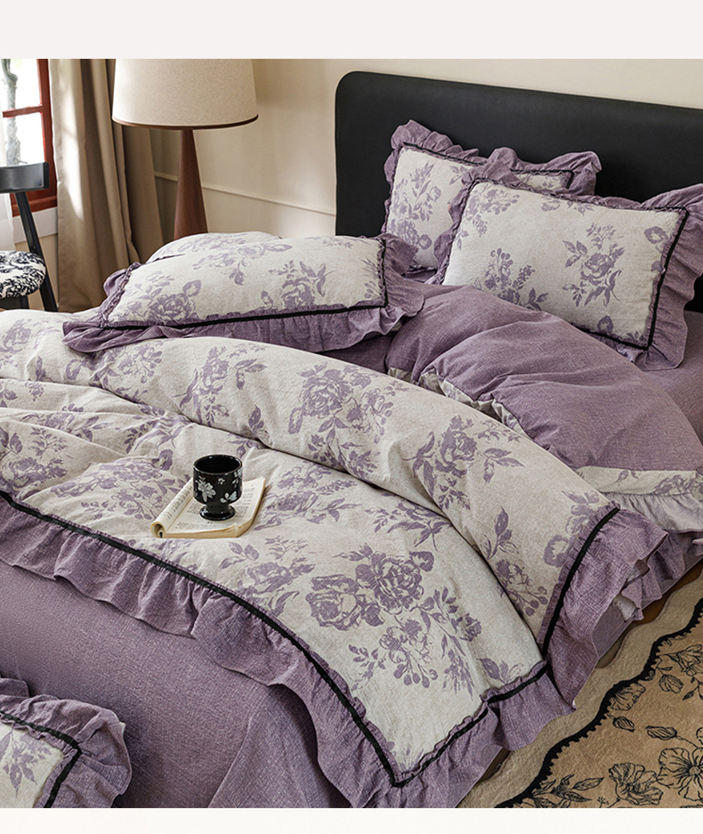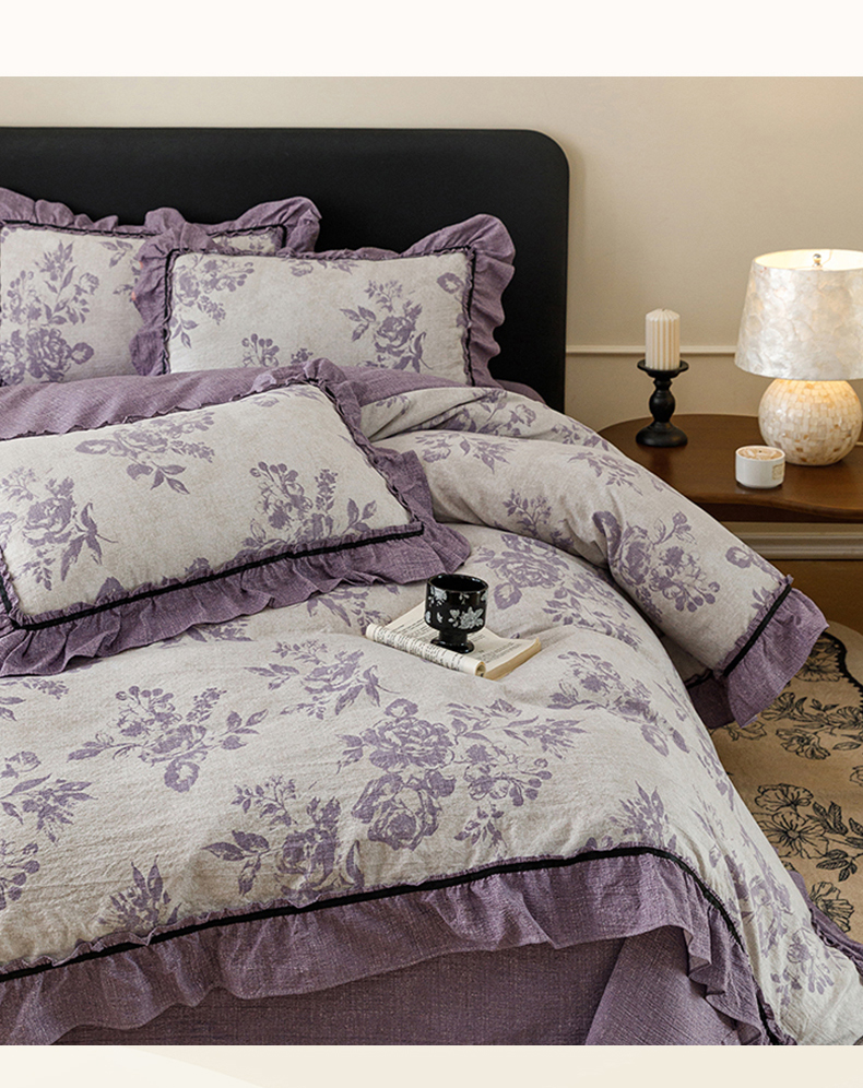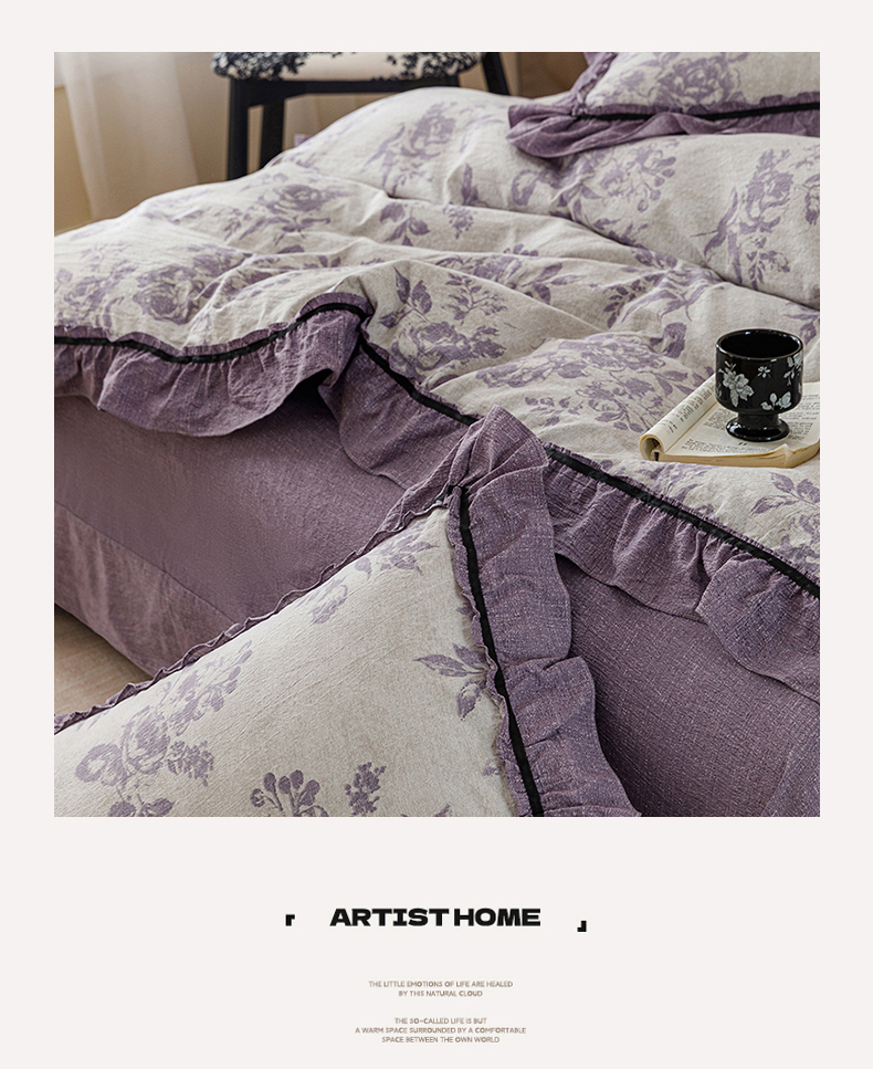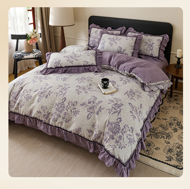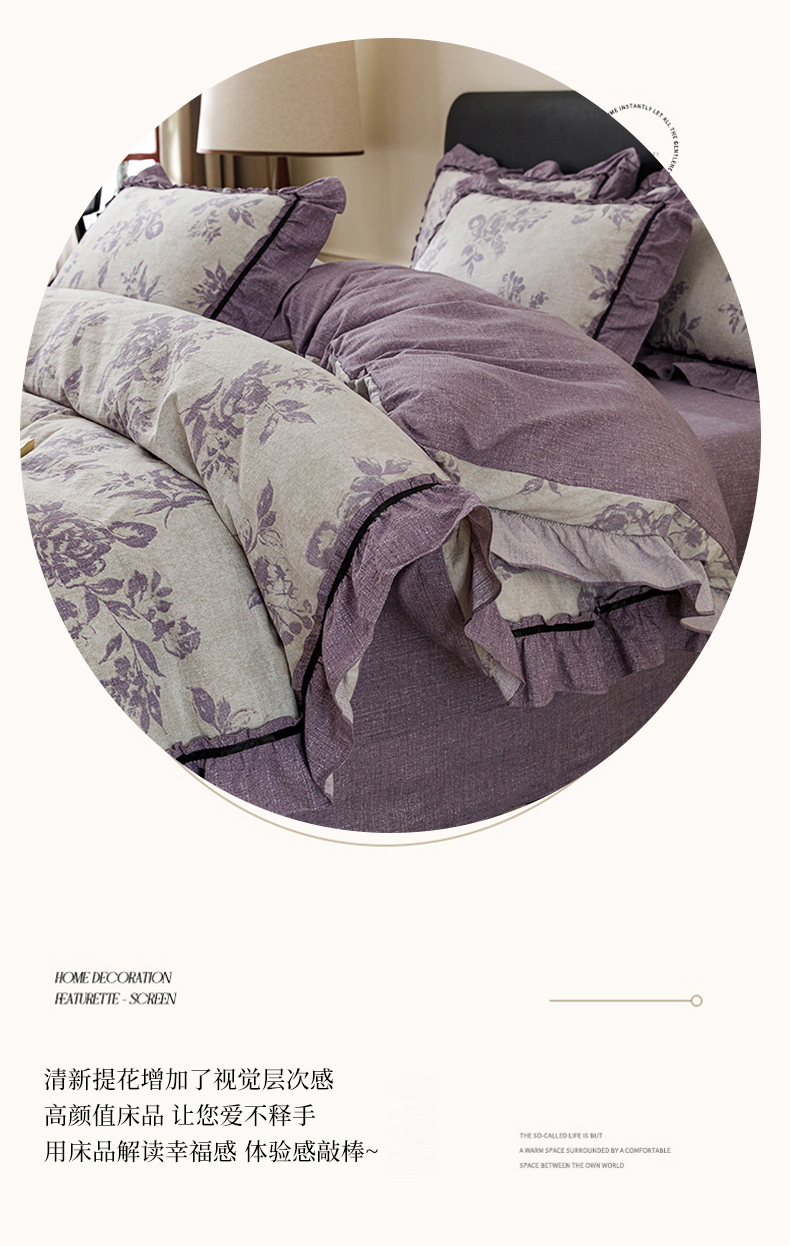 商品名称:悦然毛巾被 2026新款原麻水洗提花四件套 紫萝绮梦